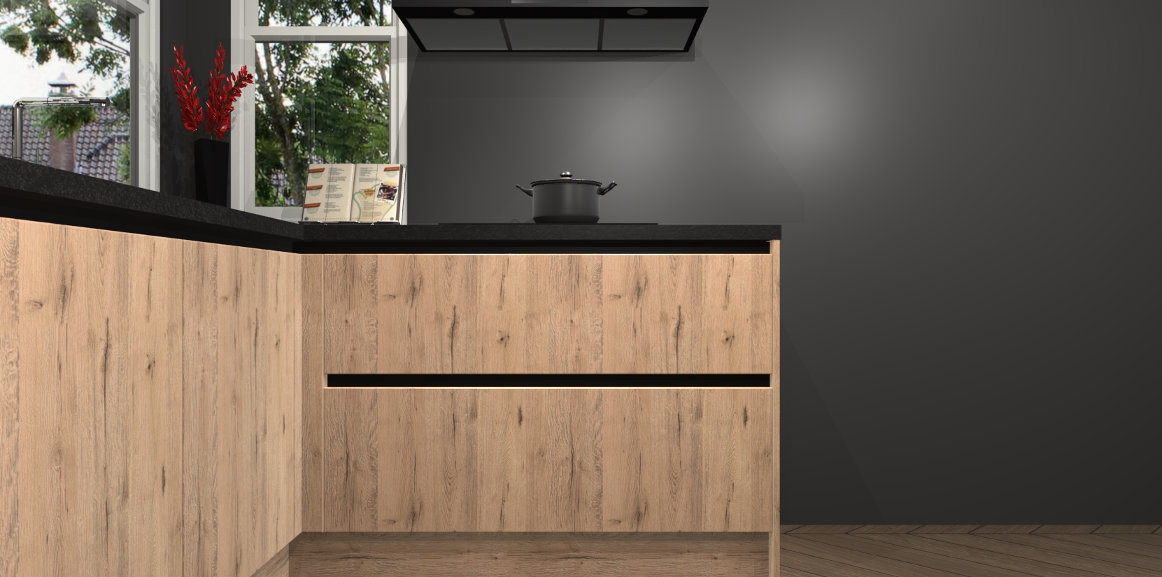 We hebben iets speciaals voor u: de Madera Natuur greeploze keuken Kotor. Het is een hoekkeuken die sfeer en warmte uitstraalt, en zijn hout-look geeft hem een unieke touch. Perfect voor elk huis!