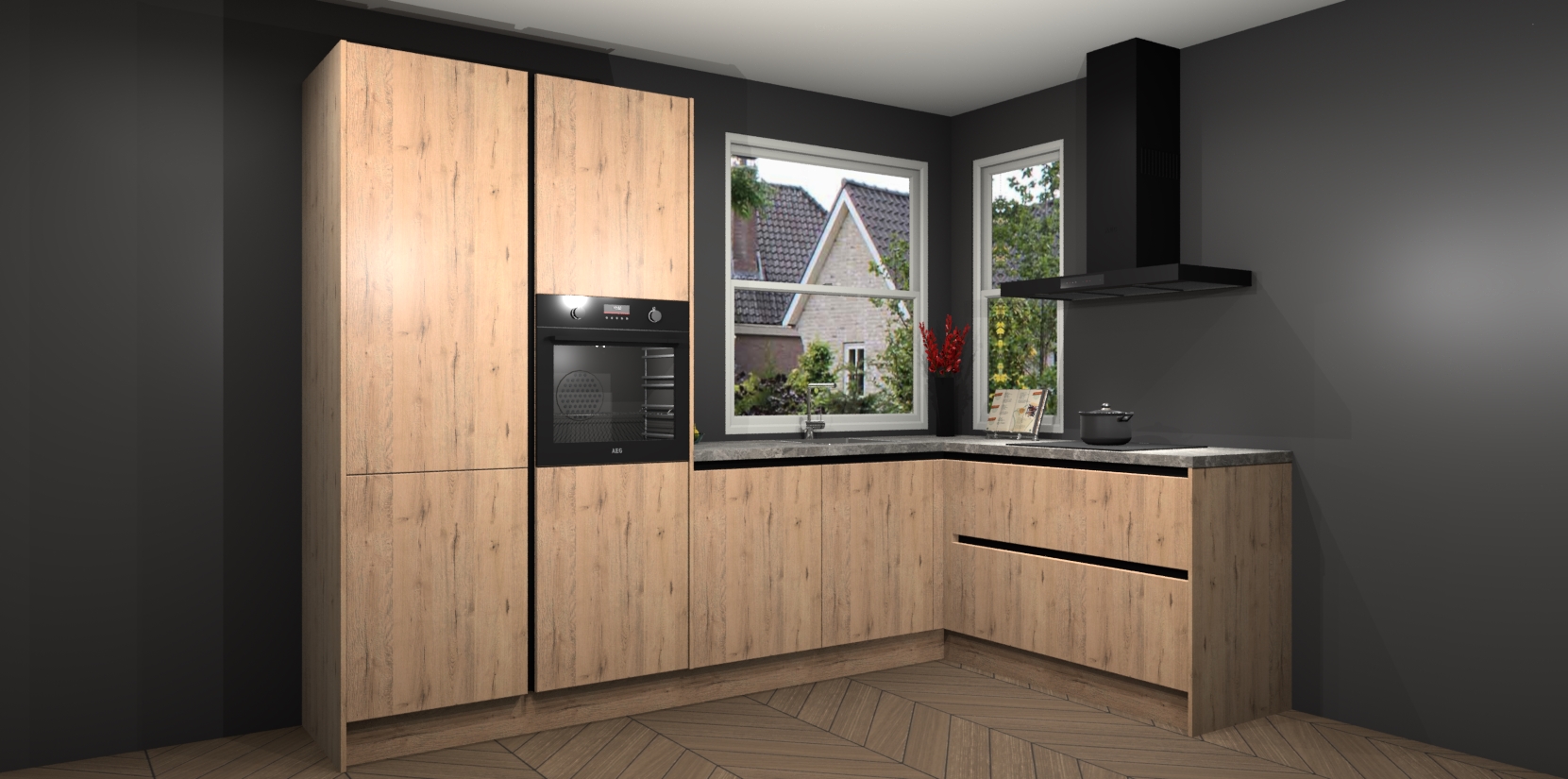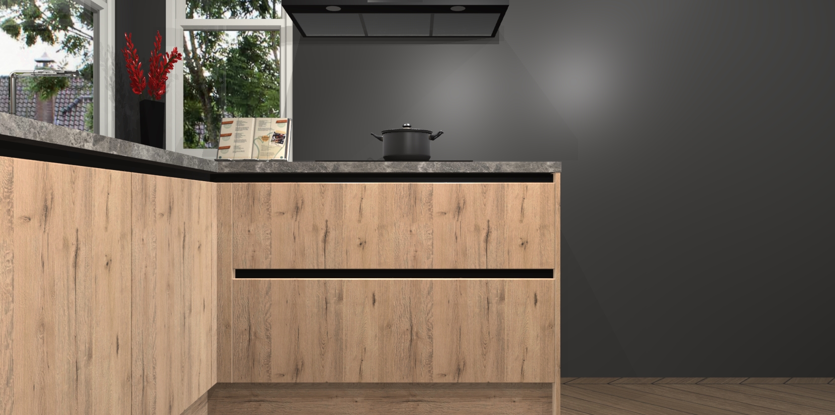 We hebben iets speciaals voor u: de Madera Natuur greeploze keuken Kotor. Het is een hoekkeuken die sfeer en warmte uitstraalt, en zijn hout-look geeft hem een unieke touch. Perfect voor elk huis!