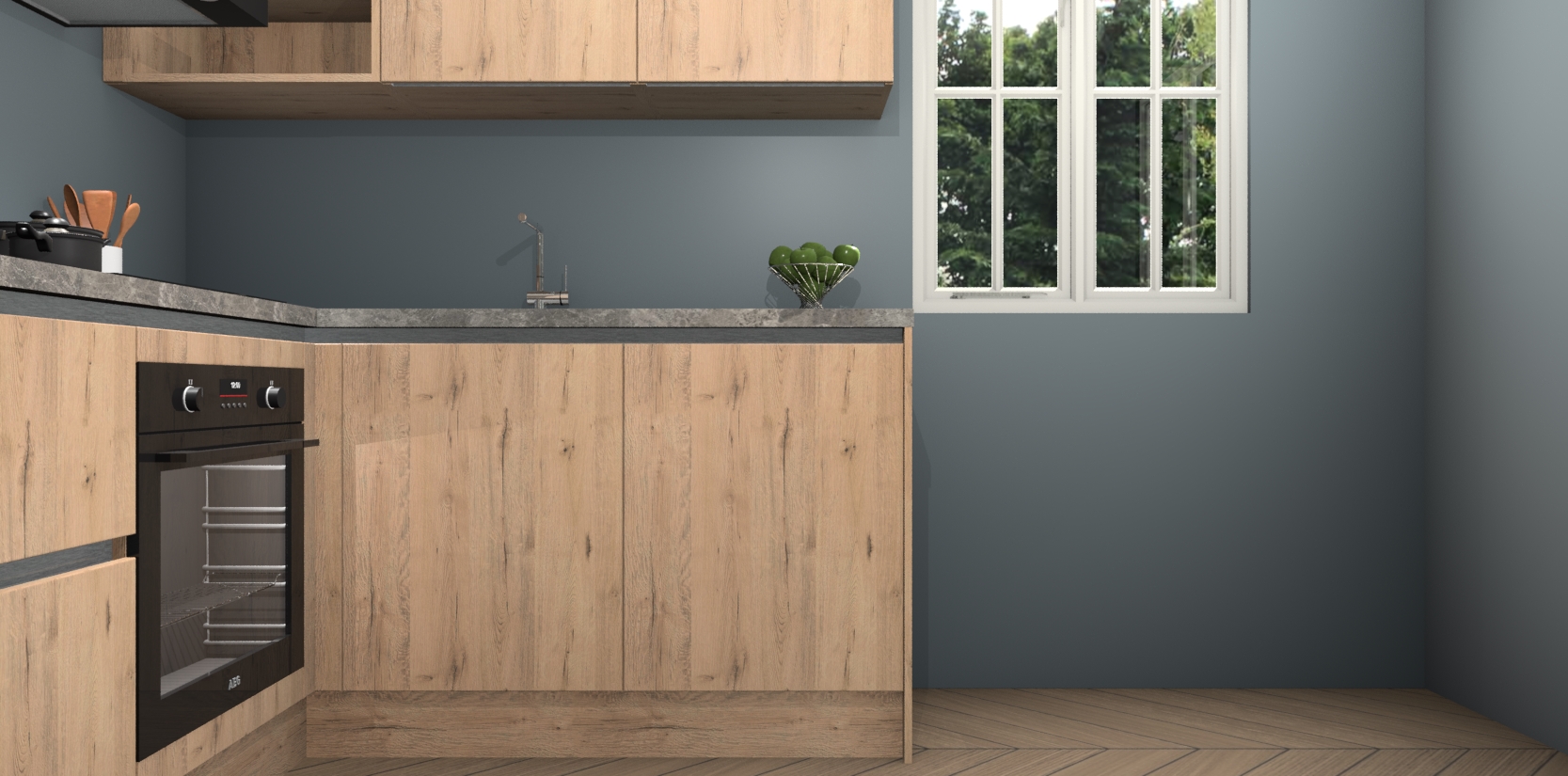 Dit model biedt u voldoende opbergruimte en vijf ingebouwde apparaten: een oven, inductiekookplaat, afzuigkap, vaatwasser en koelkast. Deze apparaten kunnen gemakkelijk worden geüpgrade naar AEG nadat u besteld heeft. De verschillende laden en kastjes bevatten softclose-deuren waardoor ze gezellig dichtvallen met een geruststellend helemaal geruisloos geluid. En dat is nog niet alles! We garanderen ook dat de prijs altijd laag blijft - dus haal nu uw Madera Natuur greeploze keuken Krakau terwijl het kan.