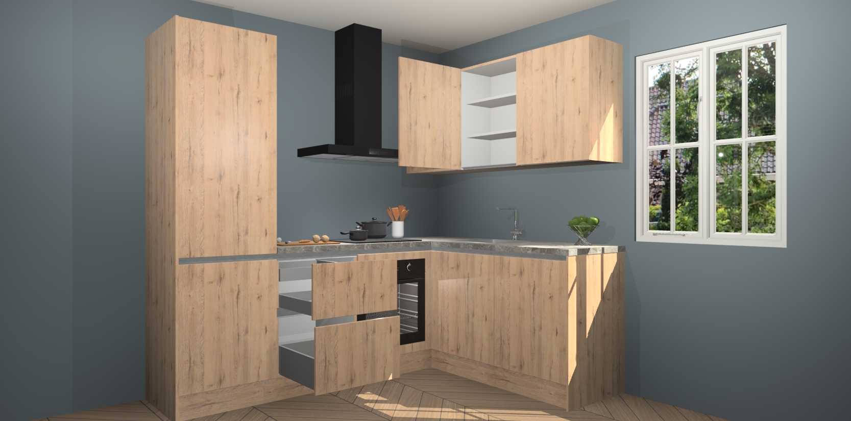 Bestellen was nog nooit zo makkelijk en we leveren met slechts 7 weken; zodra de keuken arriveert staan de kasten voor gemonteerd klaar om er alles aan te doen dat u hem gemakkelijk zelf kunt installeren! Eén ding is zeker: met de Madera Natuur greeploze keuken Krakau slaagt u erin modischer, modernere keukens uit te rusten die tientallen jaren meegaan! Haal snel uw Madera Natuur greeploze keuken Krakau - of u nu net begint of al 'levenservaring' hebt in de keukendroomloopbaan - want dit topmodel van onze collectie wilt u absoluut niet missen.