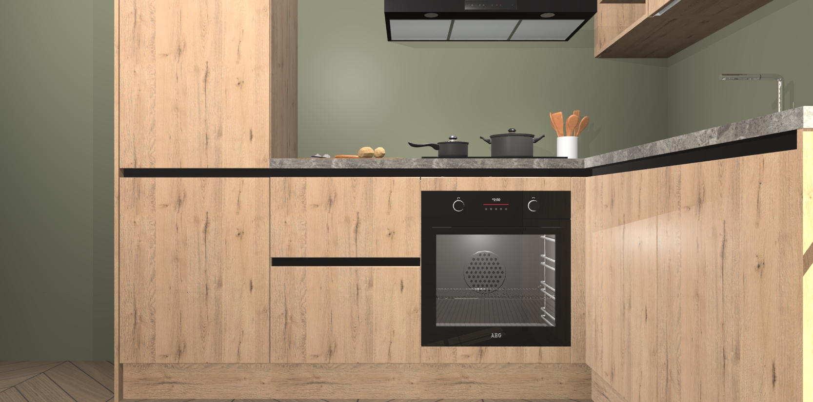 Dit model biedt u voldoende opbergruimte en vijf ingebouwde apparaten: een oven, inductiekookplaat, afzuigkap, vaatwasser en koelkast. Deze apparaten kunnen gemakkelijk worden geüpgrade naar AEG nadat u besteld heeft. De verschillende laden en kastjes bevatten softclose-deuren waardoor ze gezellig dichtvallen met een geruststellend helemaal geruisloos geluid. En dat is nog niet alles! We garanderen ook dat de prijs altijd laag blijft - dus haal nu uw Madera Natuur greeploze keuken Krakau terwijl het kan.