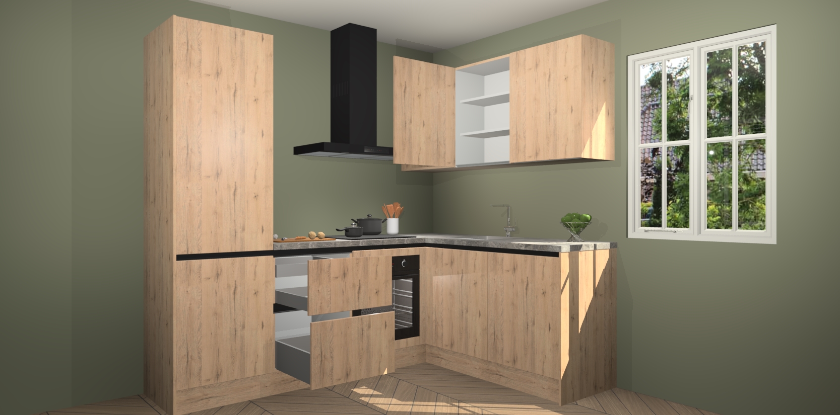 Bestellen was nog nooit zo makkelijk en we leveren met slechts 7 weken; zodra de keuken arriveert staan de kasten voor gemonteerd klaar om er alles aan te doen dat u hem gemakkelijk zelf kunt installeren! Eén ding is zeker: met de Madera Natuur greeploze keuken Krakau slaagt u erin modischer, modernere keukens uit te rusten die tientallen jaren meegaan! Haal snel uw Madera Natuur greeploze keuken Krakau - of u nu net begint of al 'levenservaring' hebt in de keukendroomloopbaan - want dit topmodel van onze collectie wilt u absoluut niet missen.