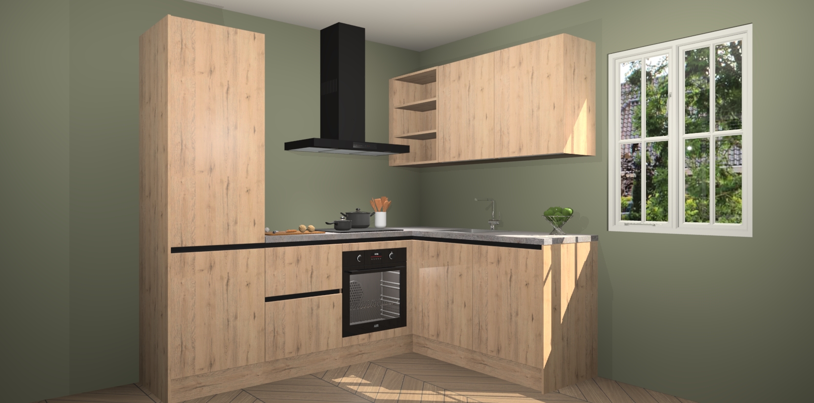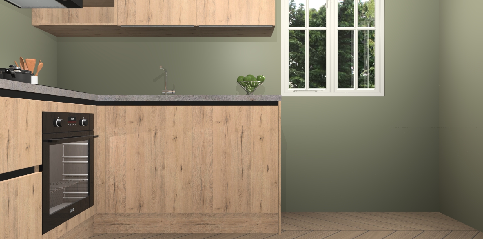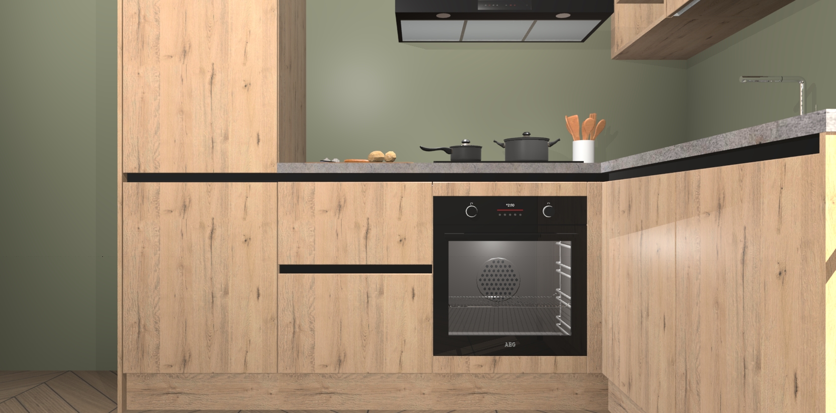 Dit model biedt u voldoende opbergruimte en vijf ingebouwde apparaten: een oven, inductiekookplaat, afzuigkap, vaatwasser en koelkast. Deze apparaten kunnen gemakkelijk worden geüpgrade naar AEG nadat u besteld heeft. De verschillende laden en kastjes bevatten softclose-deuren waardoor ze gezellig dichtvallen met een geruststellend helemaal geruisloos geluid. En dat is nog niet alles! We garanderen ook dat de prijs altijd laag blijft - dus haal nu uw Madera Natuur greeploze keuken Krakau terwijl het kan.