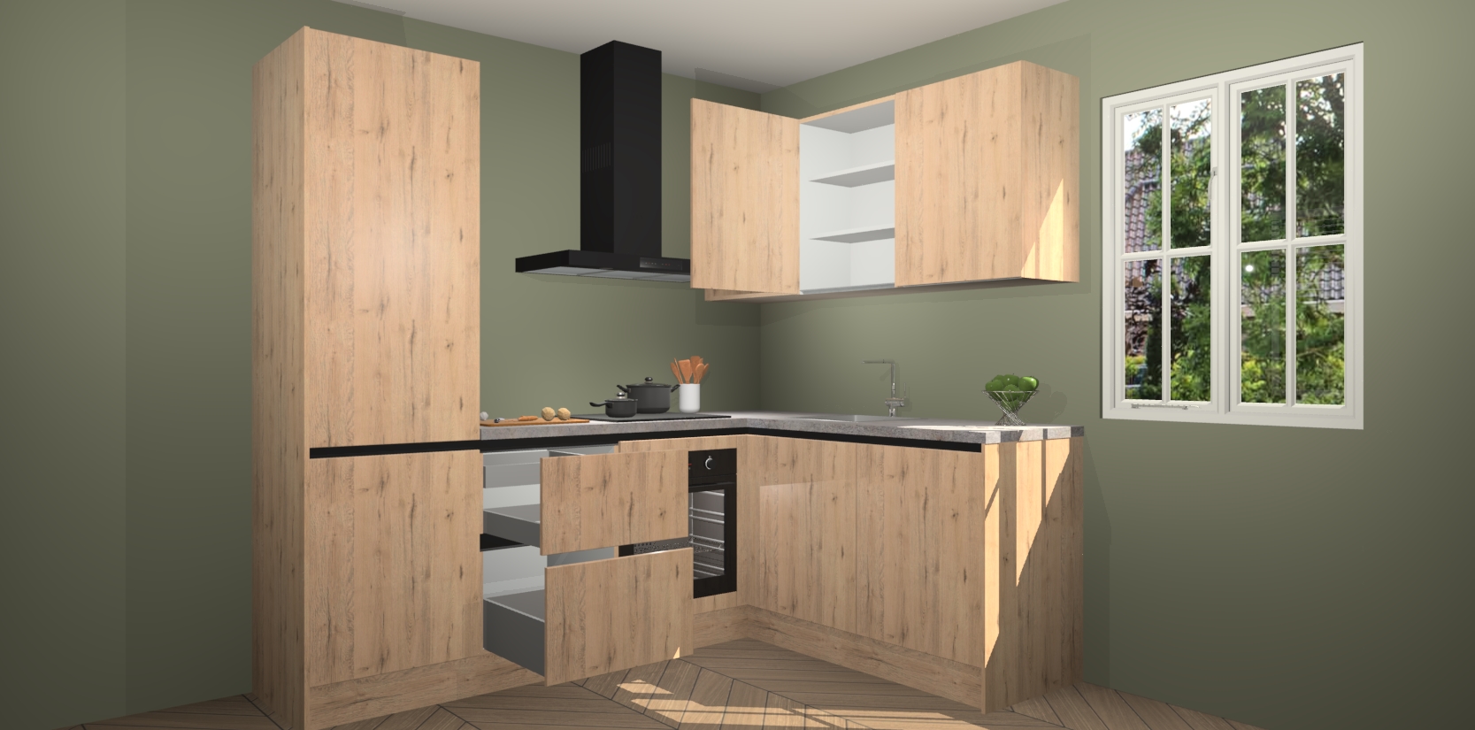 Bestellen was nog nooit zo makkelijk en we leveren met slechts 7 weken; zodra de keuken arriveert staan de kasten voor gemonteerd klaar om er alles aan te doen dat u hem gemakkelijk zelf kunt installeren! Eén ding is zeker: met de Madera Natuur greeploze keuken Krakau slaagt u erin modischer, modernere keukens uit te rusten die tientallen jaren meegaan! Haal snel uw Madera Natuur greeploze keuken Krakau - of u nu net begint of al 'levenservaring' hebt in de keukendroomloopbaan - want dit topmodel van onze collectie wilt u absoluut niet missen.