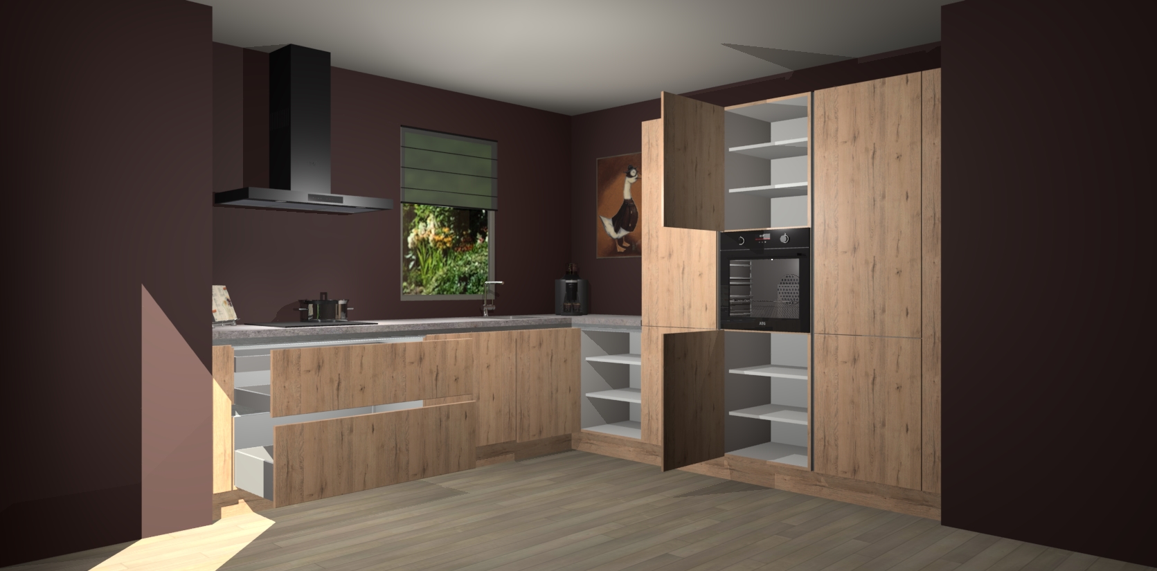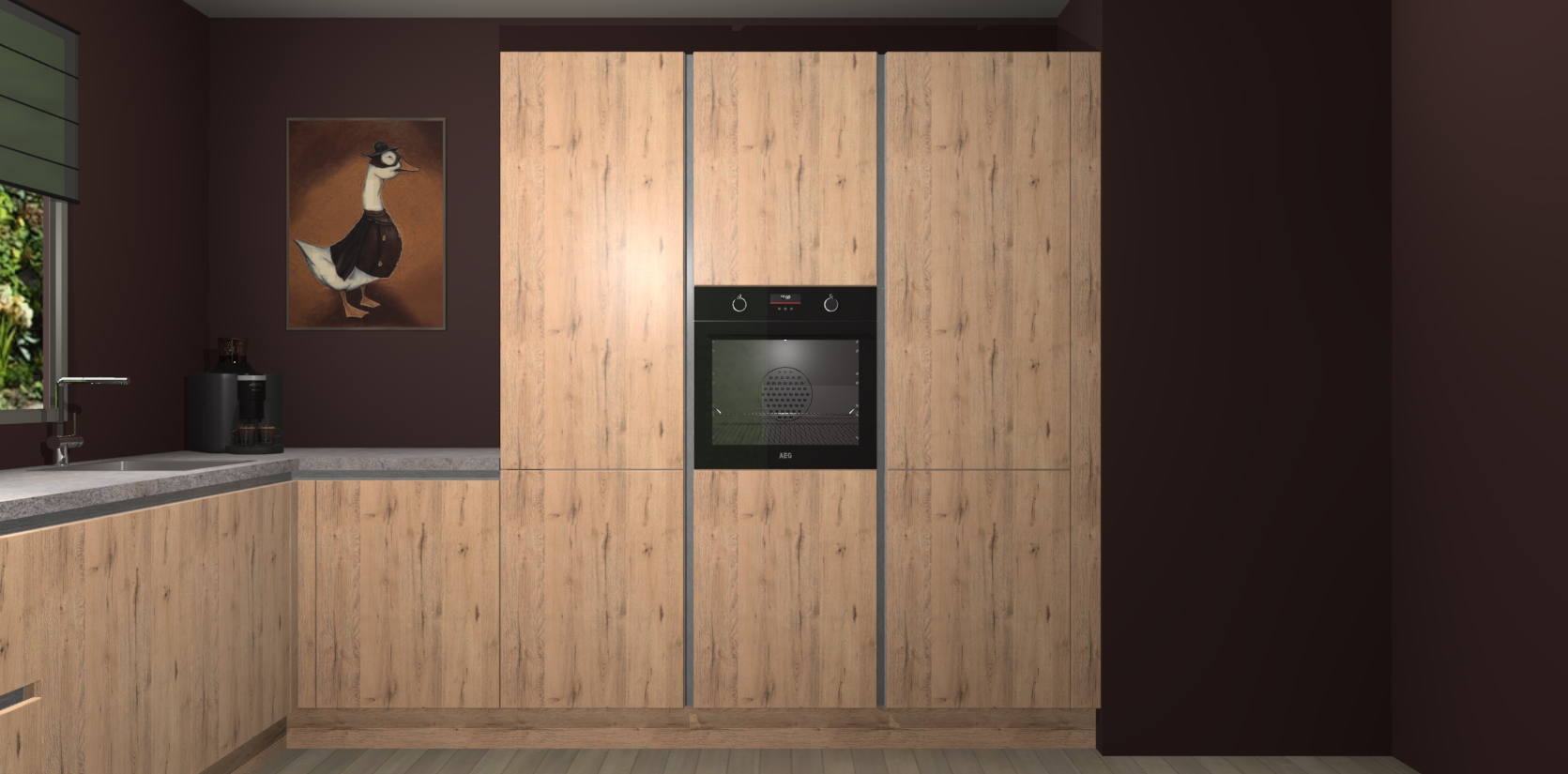 Welkom bij de Madera Natuur greeploze keuken Laos. Deze prachtige keuken zal de komende jaren het middelpunt van de belangstelling in uw huis zijn. Uitgerust met vijf inbouwapparaten komt u nooit kookgereedschap tekort. Bovendien geeft de warme houtlook elke ruimte een uitnodigende en tijdloze uitstraling.