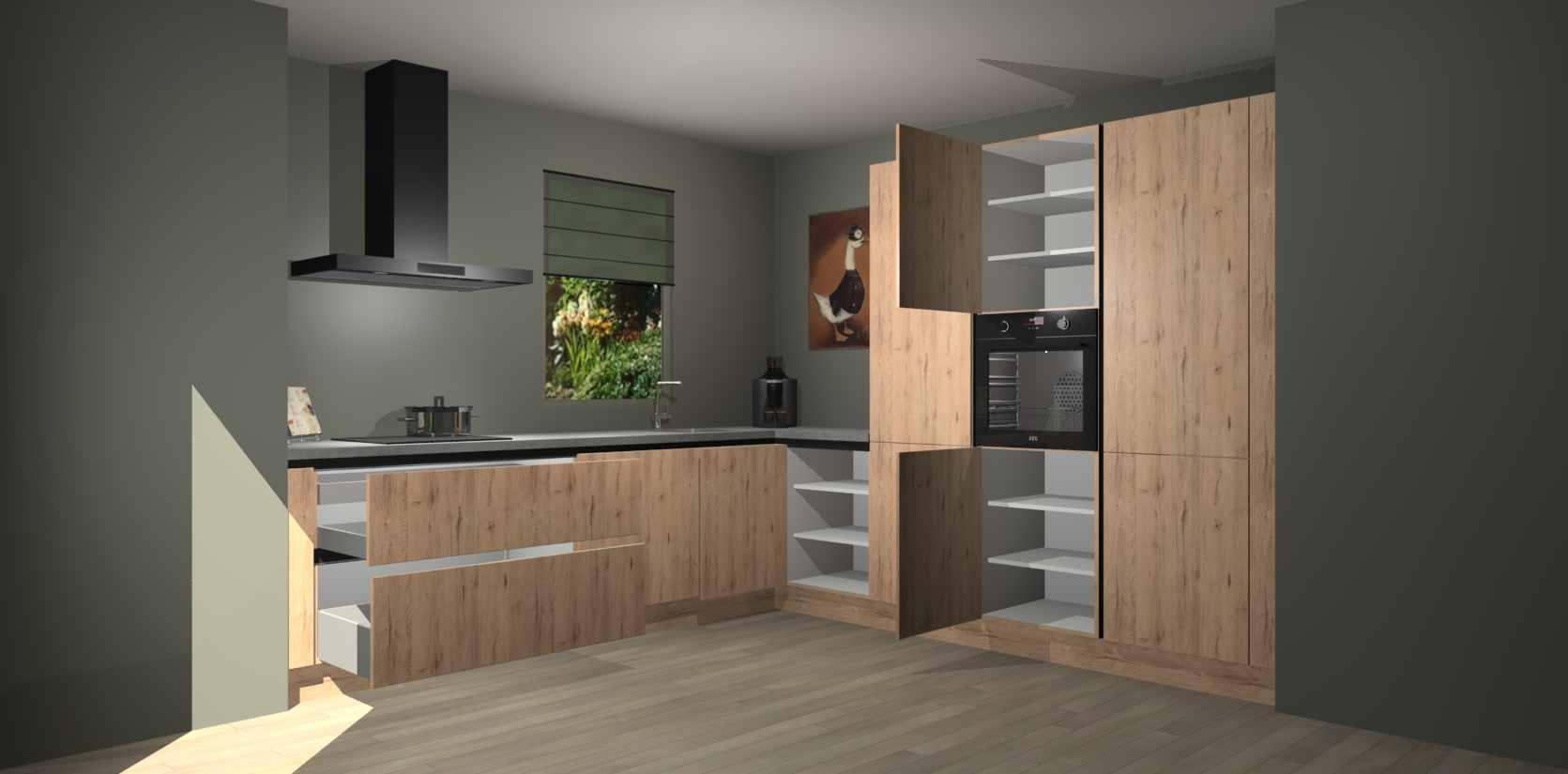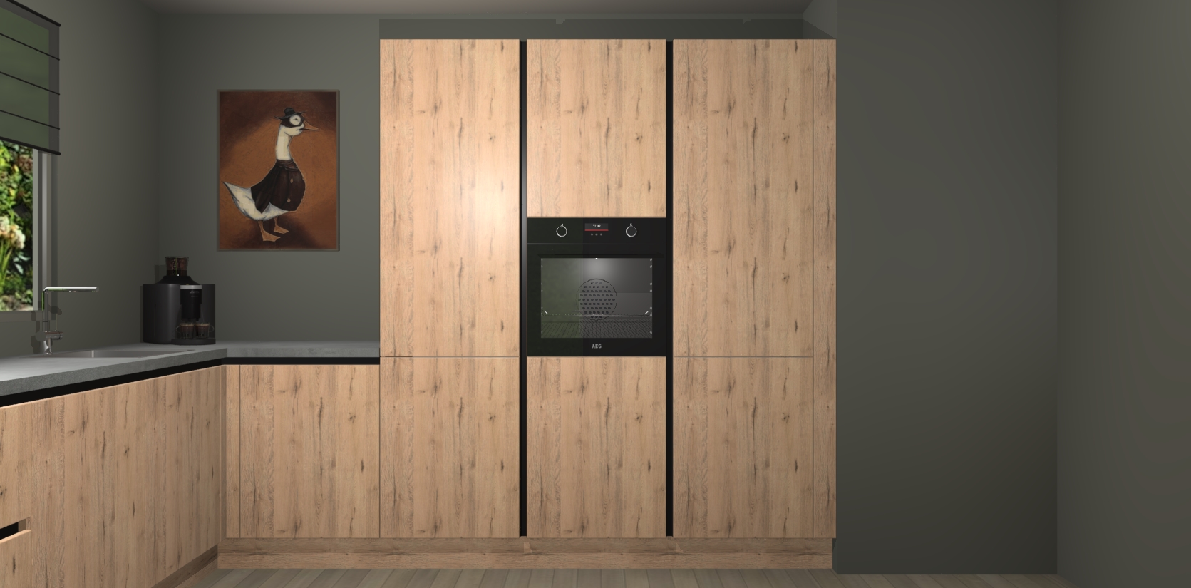 Welkom bij de Madera Natuur greeploze keuken Laos. Deze prachtige keuken zal de komende jaren het middelpunt van de belangstelling in uw huis zijn. Uitgerust met vijf inbouwapparaten komt u nooit kookgereedschap tekort. Bovendien geeft de warme houtlook elke ruimte een uitnodigende en tijdloze uitstraling.