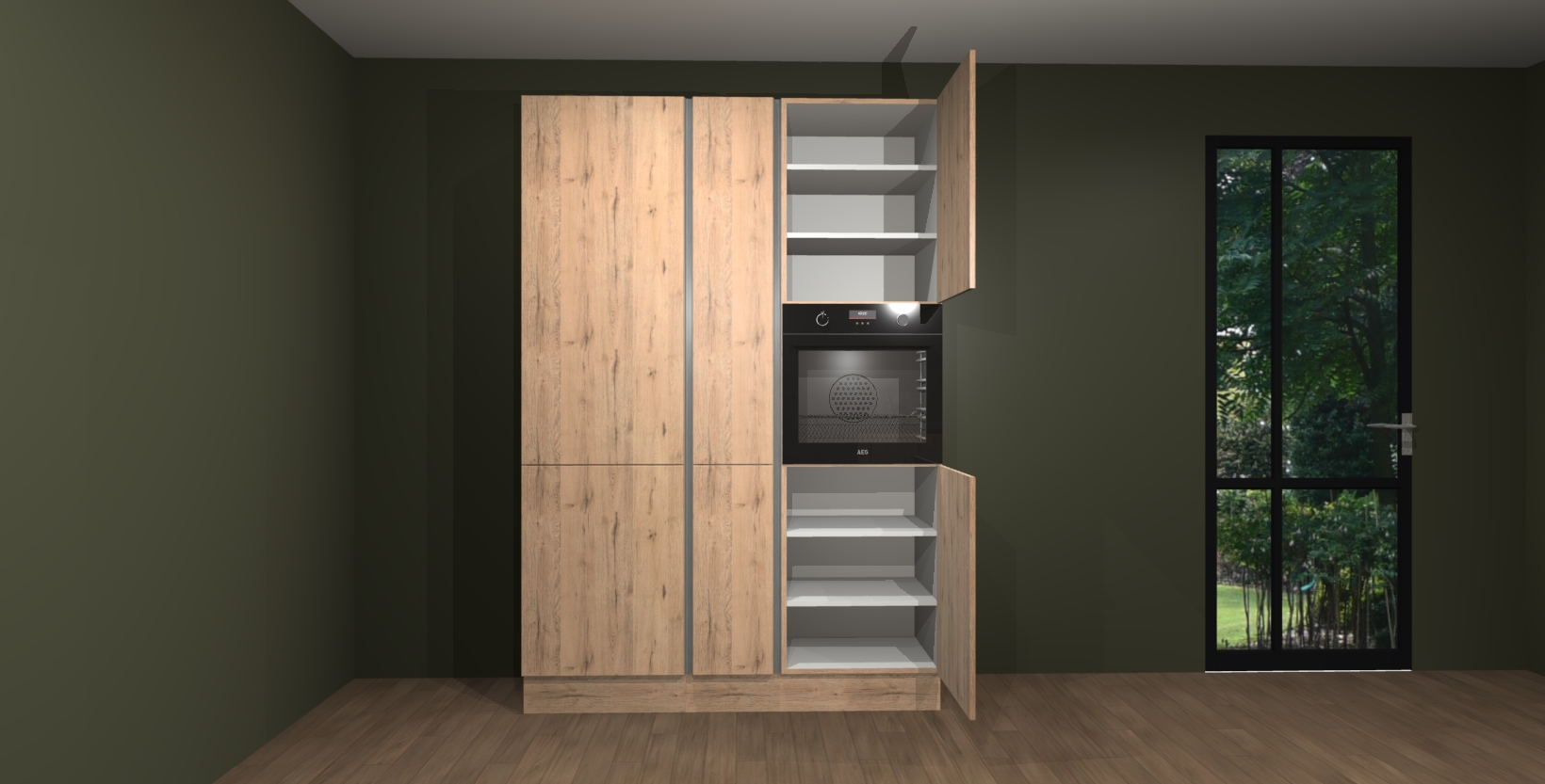 Met een modern, tijdloos design en ruime opslagruimte, zult u zich in no-time thuis voelen in uw nieuwe keuken. Uw leven wordt eenvoudiger met de soft-close deuren die voor het ultieme stille comfort zorgen - geen geluid dat u stoort terwijl u kookt. Ook is de keuken voorzien van 5 ingebouwde apparaten: een oven, inductie kookplaat, afzuigkap, vaatwasser en koelkast. Deze kunnen gemakkelijk na bestelling worden bijgewerkt naar AEG - waardoor uw luxe ervaring compleet is.