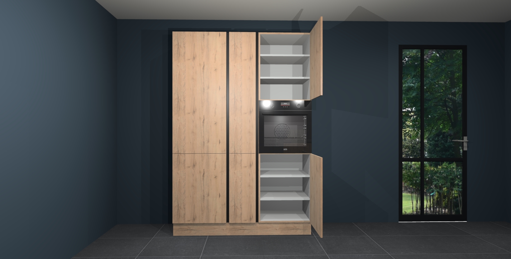 Met een modern, tijdloos design en ruime opslagruimte, zult u zich in no-time thuis voelen in uw nieuwe keuken. Uw leven wordt eenvoudiger met de soft-close deuren die voor het ultieme stille comfort zorgen - geen geluid dat u stoort terwijl u kookt. Ook is de keuken voorzien van 5 ingebouwde apparaten: een oven, inductie kookplaat, afzuigkap, vaatwasser en koelkast. Deze kunnen gemakkelijk na bestelling worden bijgewerkt naar AEG - waardoor uw luxe ervaring compleet is.