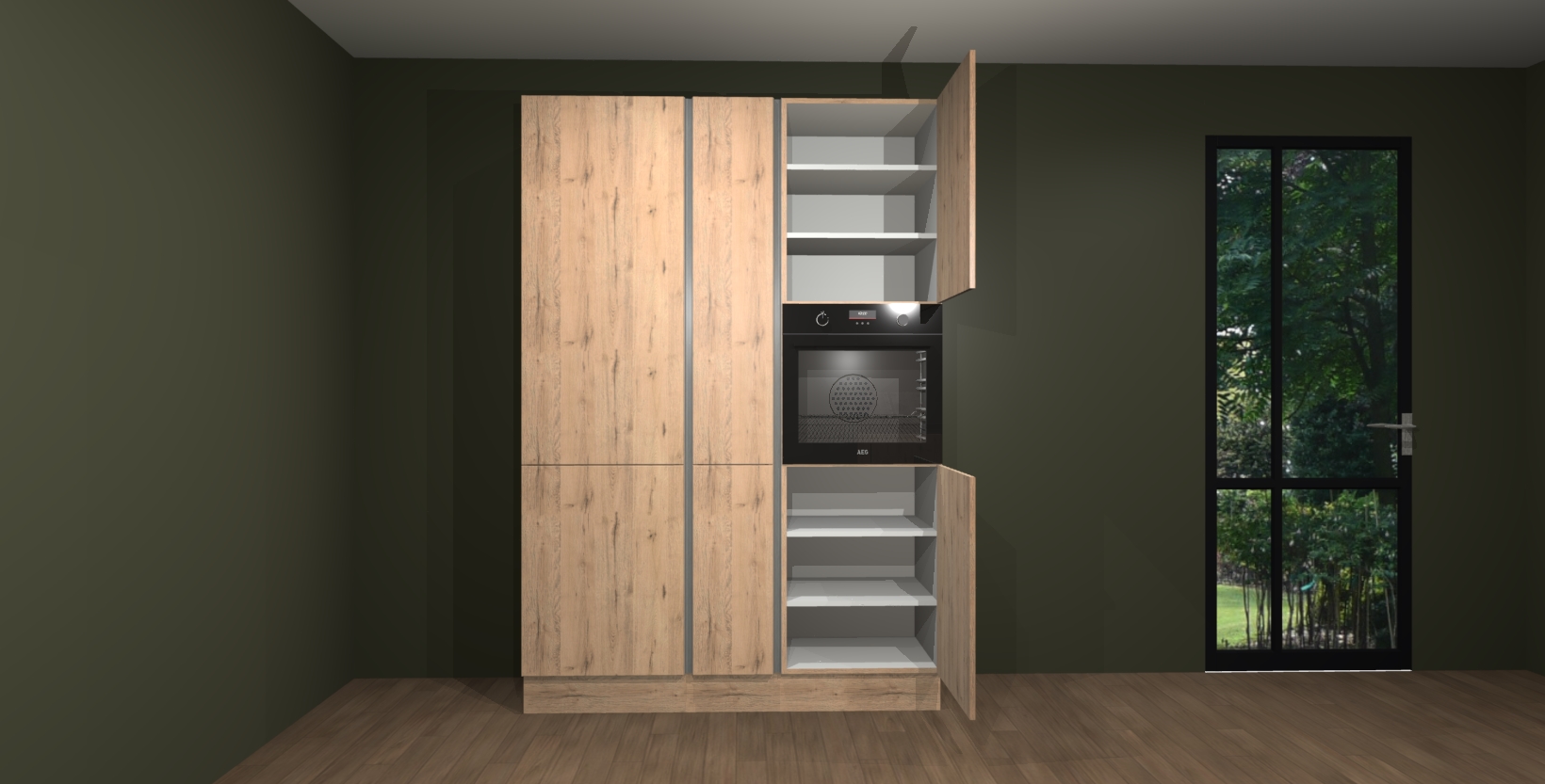 Met een modern, tijdloos design en ruime opslagruimte, zult u zich in no-time thuis voelen in uw nieuwe keuken. Uw leven wordt eenvoudiger met de soft-close deuren die voor het ultieme stille comfort zorgen - geen geluid dat u stoort terwijl u kookt. Ook is de keuken voorzien van 5 ingebouwde apparaten: een oven, inductie kookplaat, afzuigkap, vaatwasser en koelkast. Deze kunnen gemakkelijk na bestelling worden bijgewerkt naar AEG - waardoor uw luxe ervaring compleet is.