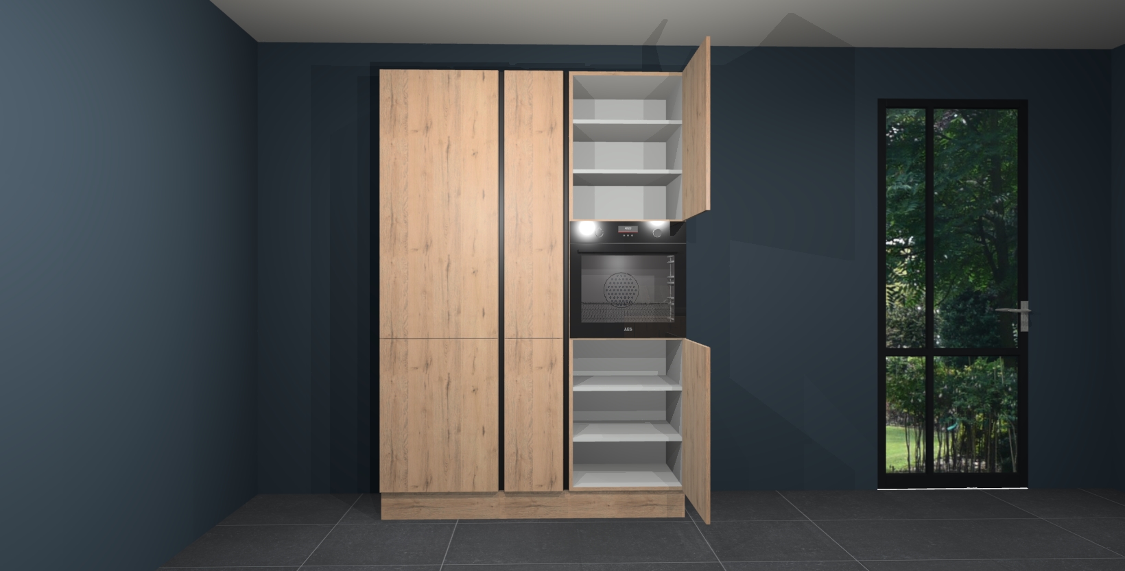 Met een modern, tijdloos design en ruime opslagruimte, zult u zich in no-time thuis voelen in uw nieuwe keuken. Uw leven wordt eenvoudiger met de soft-close deuren die voor het ultieme stille comfort zorgen - geen geluid dat u stoort terwijl u kookt. Ook is de keuken voorzien van 5 ingebouwde apparaten: een oven, inductie kookplaat, afzuigkap, vaatwasser en koelkast. Deze kunnen gemakkelijk na bestelling worden bijgewerkt naar AEG - waardoor uw luxe ervaring compleet is.