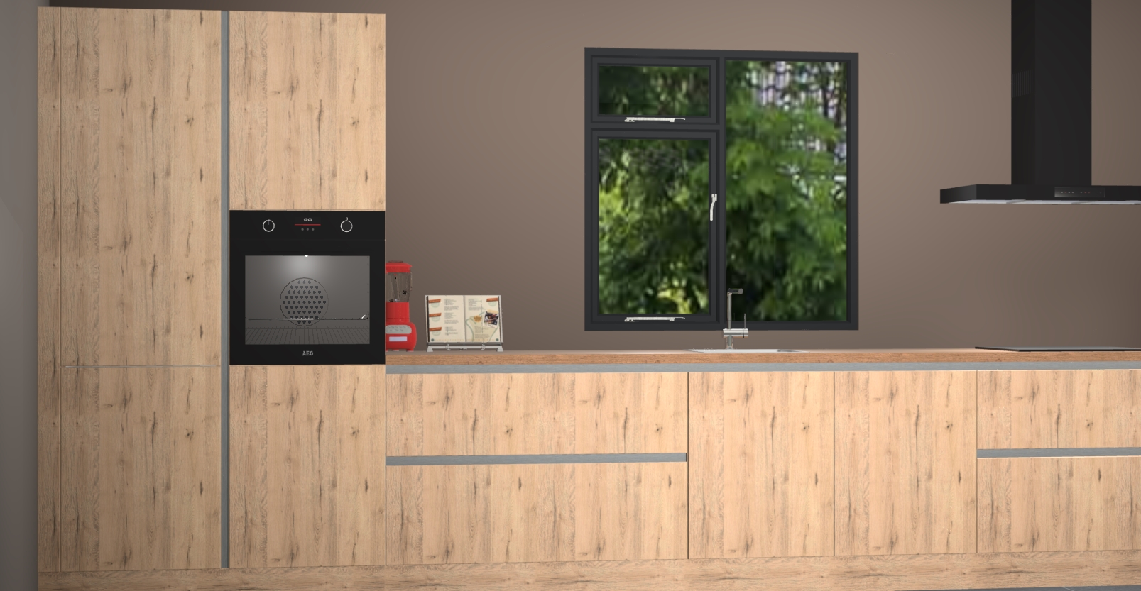 De Madera natuur keuken Lille wordt geleverd met vijf inbouwapparaten - een oven, inductiekookplaat, afzuigkap, vaatwasser en koelkast. Maar dat is nog niet alles! Na bestelling kunnen deze apparaten eenvoudig worden geüpgraded naar premium AEG-apparatuur. Bovendien is er zelfs de optie om de oven te vervangen door een combimagnetron of uw inductiekookplaat te vervangen door een kookplaat met geïntegreerde afzuiging.