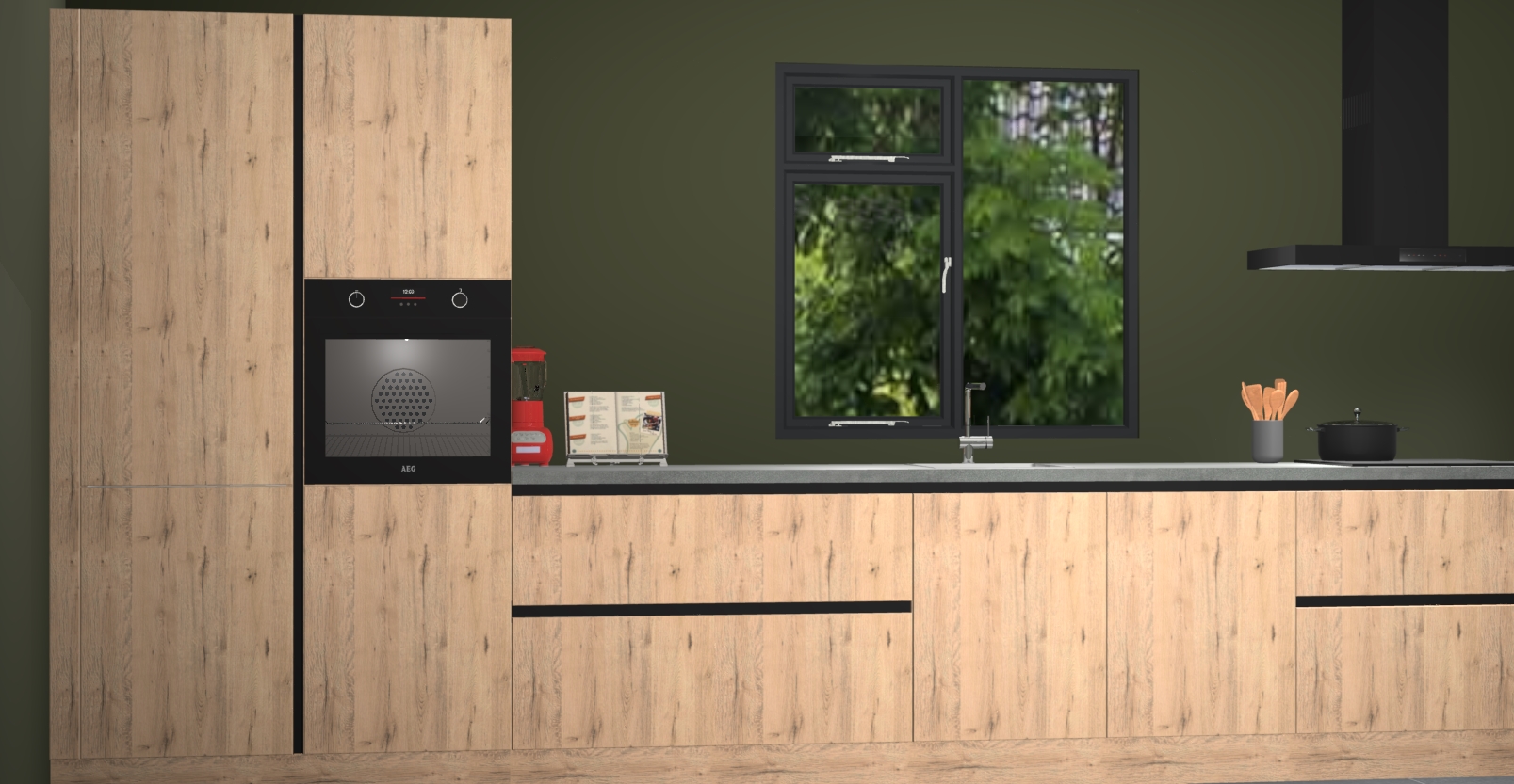 De Madera natuur keuken Lille wordt geleverd met vijf inbouwapparaten - een oven, inductiekookplaat, afzuigkap, vaatwasser en koelkast. Maar dat is nog niet alles! Na bestelling kunnen deze apparaten eenvoudig worden geüpgraded naar premium AEG-apparatuur. Bovendien is er zelfs de optie om de oven te vervangen door een combimagnetron of uw inductiekookplaat te vervangen door een kookplaat met geïntegreerde afzuiging.