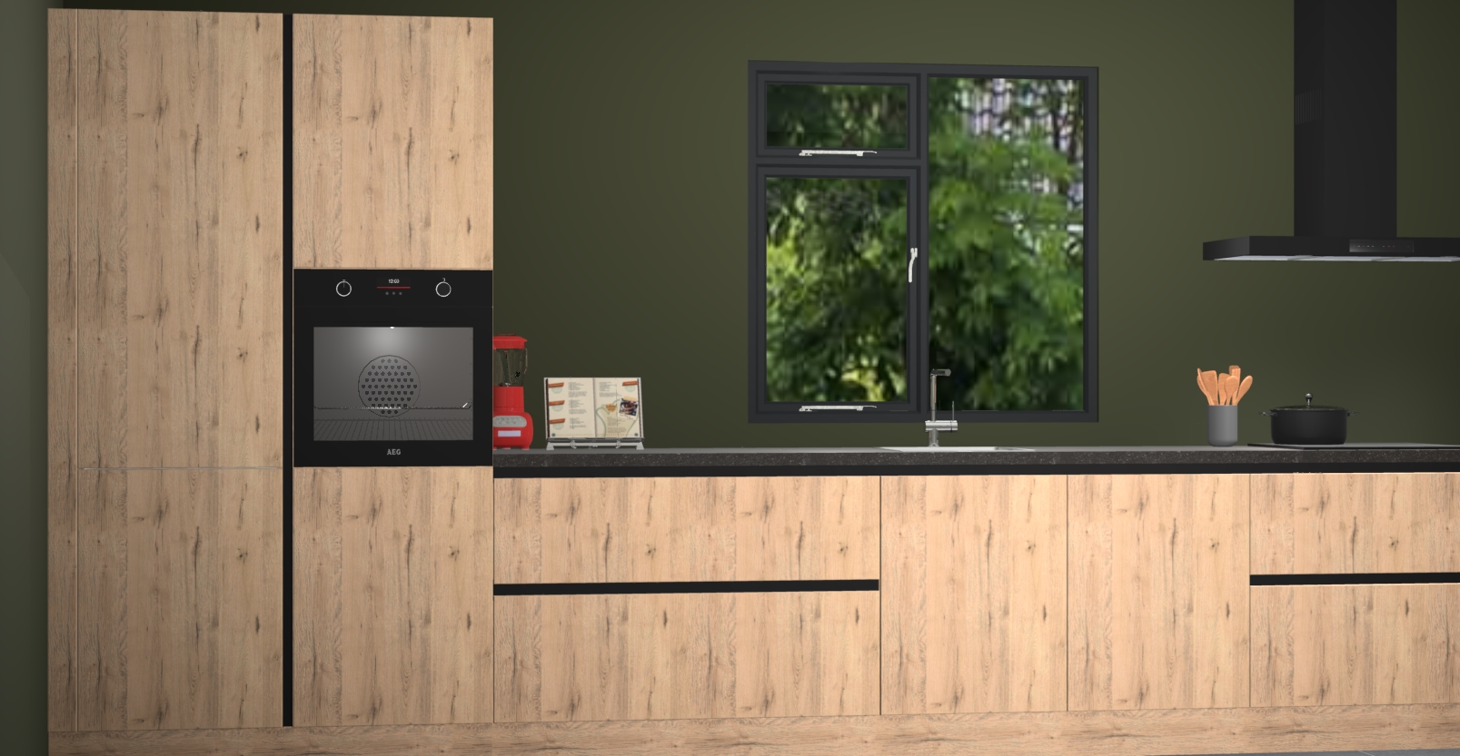De Madera natuur keuken Lille wordt geleverd met vijf inbouwapparaten - een oven, inductiekookplaat, afzuigkap, vaatwasser en koelkast. Maar dat is nog niet alles! Na bestelling kunnen deze apparaten eenvoudig worden geüpgraded naar premium AEG-apparatuur. Bovendien is er zelfs de optie om de oven te vervangen door een combimagnetron of uw inductiekookplaat te vervangen door een kookplaat met geïntegreerde afzuiging.