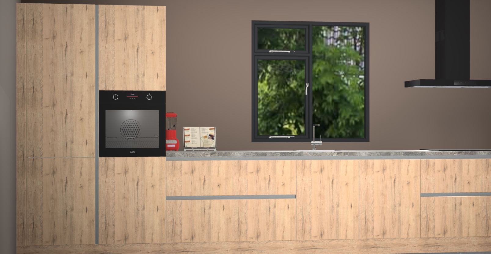 De Madera natuur keuken Lille wordt geleverd met vijf inbouwapparaten - een oven, inductiekookplaat, afzuigkap, vaatwasser en koelkast. Maar dat is nog niet alles! Na bestelling kunnen deze apparaten eenvoudig worden geüpgraded naar premium AEG-apparatuur. Bovendien is er zelfs de optie om de oven te vervangen door een combimagnetron of uw inductiekookplaat te vervangen door een kookplaat met geïntegreerde afzuiging.