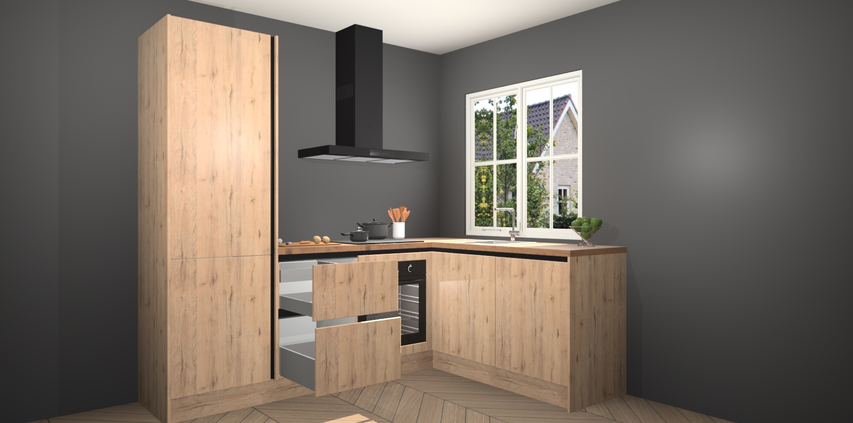 Met de Madera Natuur greeploze keuken Linz krijgt u 5 op maat gemaakte apparaten: een oven, inductiekookplaat, afzuigkap, vaatwasser en koelkast die na bestelling makkelijk worden geüpgraded naar AEG-producten. Met de zacht sluitende deuren, bent u verzekerd van eenvoudige bediening in stilte. Het kastmeubilair wordt alvast pre-assemblage geleverd waardoor u sneller met het installeren begint. Ook zijn alle deuren voorzien van softclose zodat er geen sporen op de lade blijven als u ze dicht doet. Bovendien hoeft u bij ons geen twijfels of verassingen te hebben: we hebben een vaste lage prijs waardoor u weet wat u mag verwachten bij elke bestelling.