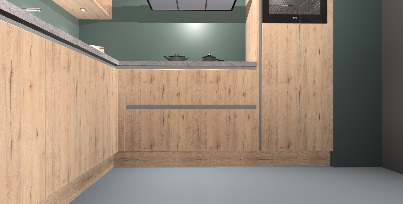 Met een modern, tijdloos design en ruime opslagruimte, zult u zich in no-time thuis voelen in uw nieuwe keuken. Uw leven wordt eenvoudiger met de soft-close deuren die voor het ultieme stille comfort zorgen - geen geluid dat u stoort terwijl u kookt. Ook is de keuken voorzien van 5 ingebouwde apparaten: een oven, inductie kookplaat, afzuigkap, vaatwasser en koelkast. Deze kunnen gemakkelijk na bestelling worden bijgewerkt naar AEG - waardoor uw luxe ervaring compleet is.