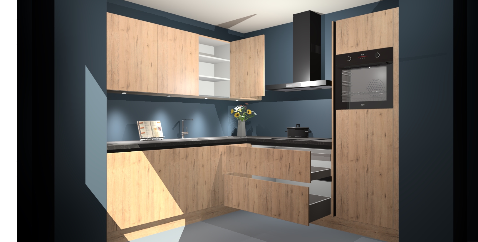 Met een modern, tijdloos design en ruime opslagruimte, zult u zich in no-time thuis voelen in uw nieuwe keuken. Uw leven wordt eenvoudiger met de soft-close deuren die voor het ultieme stille comfort zorgen - geen geluid dat u stoort terwijl u kookt. Ook is de keuken voorzien van 5 ingebouwde apparaten: een oven, inductie kookplaat, afzuigkap, vaatwasser en koelkast. Deze kunnen gemakkelijk na bestelling worden bijgewerkt naar AEG - waardoor uw luxe ervaring compleet is.