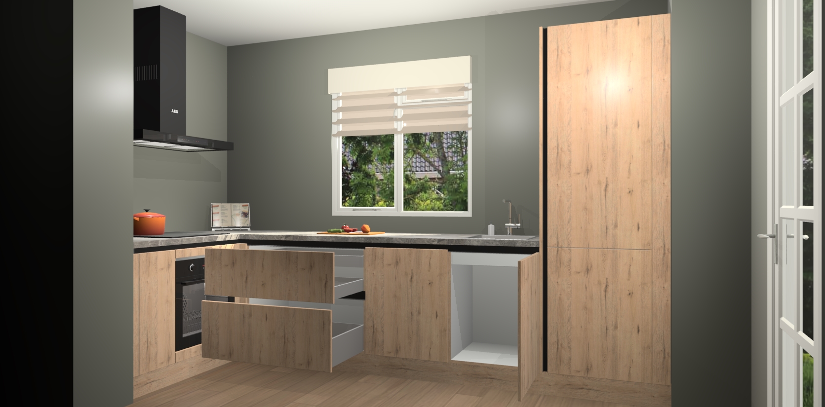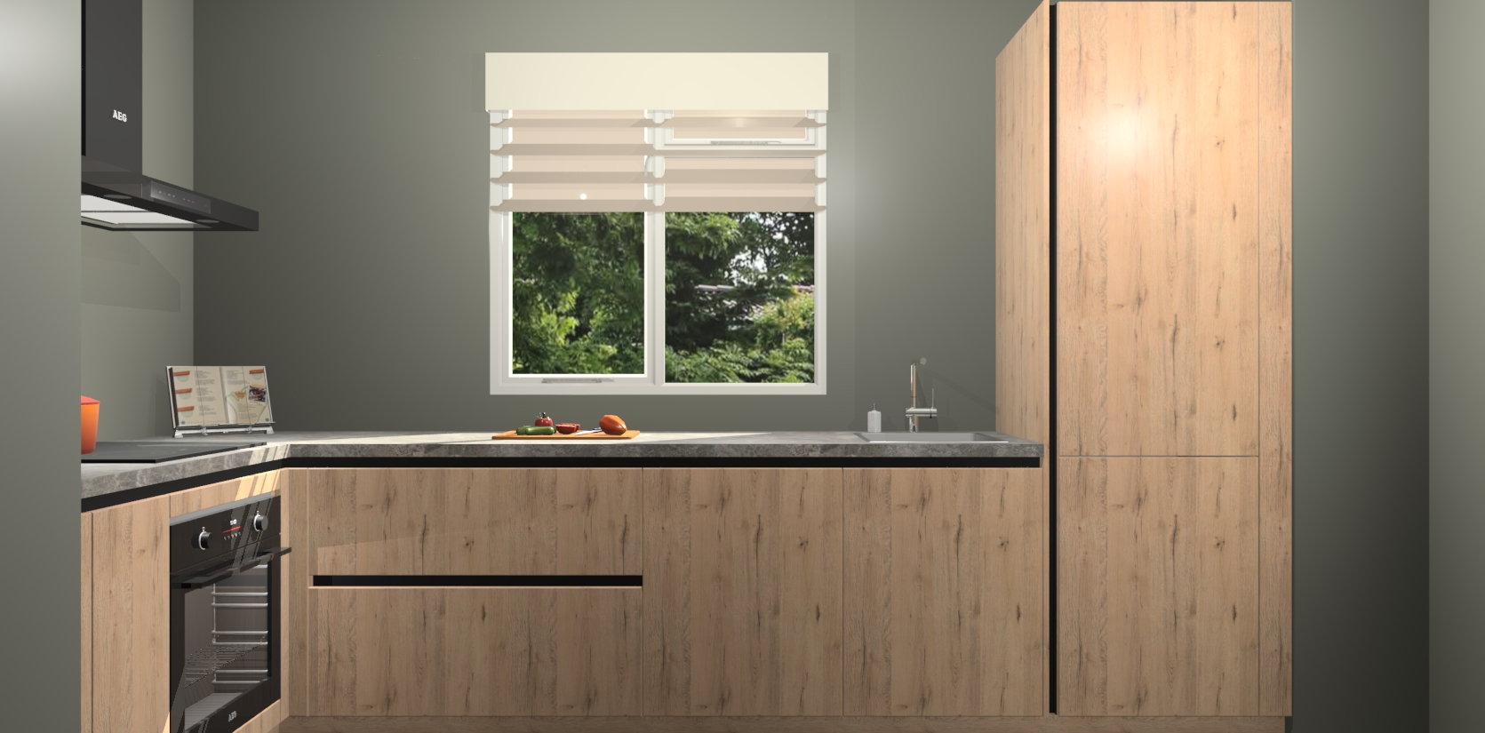 Moedige modernisten! De Madera Natuur greeploze keuken Luzern is het perfecte antwoord op al uw keukendromen. Dit geraffineerde, tijdloze ontwerp combineert strakke greeploze kasten zodat u die dure look krijgt zonder het dure prijskaartje. We weten dat planning en uitvoering de sleutels zijn tot een geslaagde keukenrenovatie, dus hebben we ervoor gezorgd dat we vijf inbouwapparaten in ons pakket hebben: een oven, inductiekookplaat, afzuigkap, vaatwasser en koelkast. Deze kunnen na bestelling gemakkelijk worden uitgebreid voor nog meer gemak.