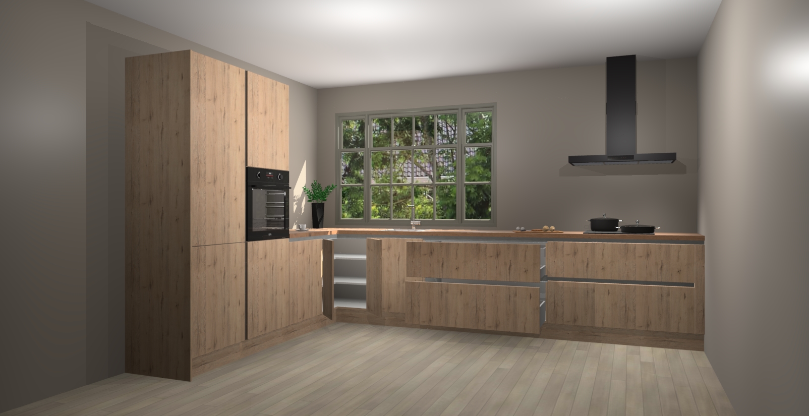Heeft u nog apparatuur nodig? Geen probleem: de Madera Natuur greeploze keuken Malaga bevat vijf ingebouwde apparaten - een oven, inductiekookplaat, afzuigkap, vaatwasser en koelkast - die gemakkelijk kunnen worden bijgewerkt naar AEG na bestelling. En als dat nog niet genoeg is; onze kasten worden pre-geassembleerd geleverd en zijn verkrijgbaar tegen een vastgeroeste lage prijs! U hoeft nooit meer te zoeken naar goede kwaliteit en service want onze producten hebben echt Duitse kwaliteit.