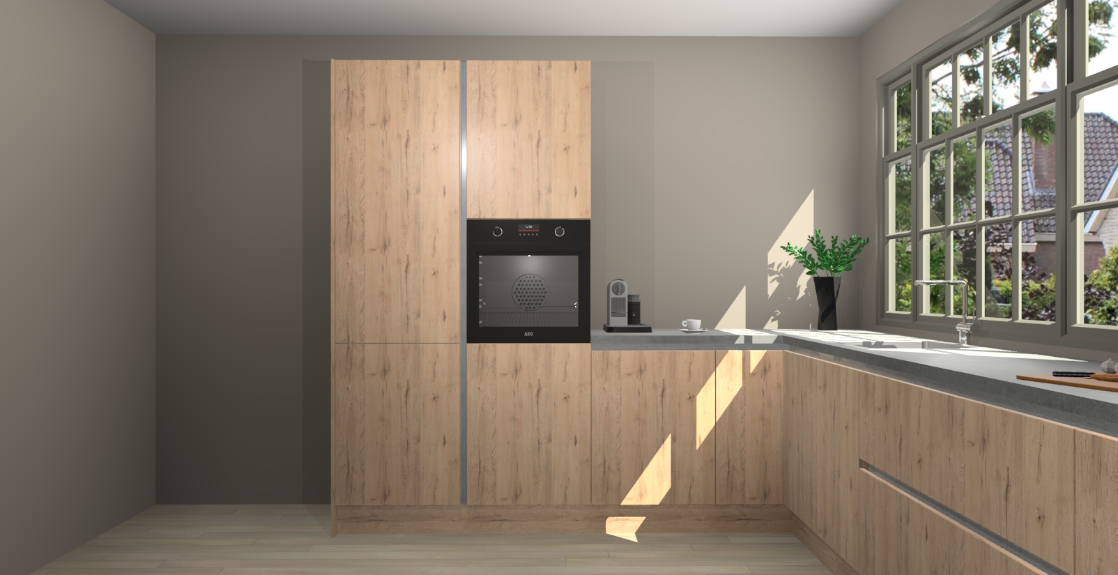 Heeft u nog apparatuur nodig? Geen probleem: de Madera Natuur greeploze keuken Malaga bevat vijf ingebouwde apparaten - een oven, inductiekookplaat, afzuigkap, vaatwasser en koelkast - die gemakkelijk kunnen worden bijgewerkt naar AEG na bestelling. En als dat nog niet genoeg is; onze kasten worden pre-geassembleerd geleverd en zijn verkrijgbaar tegen een vastgeroeste lage prijs! U hoeft nooit meer te zoeken naar goede kwaliteit en service want onze producten hebben echt Duitse kwaliteit.