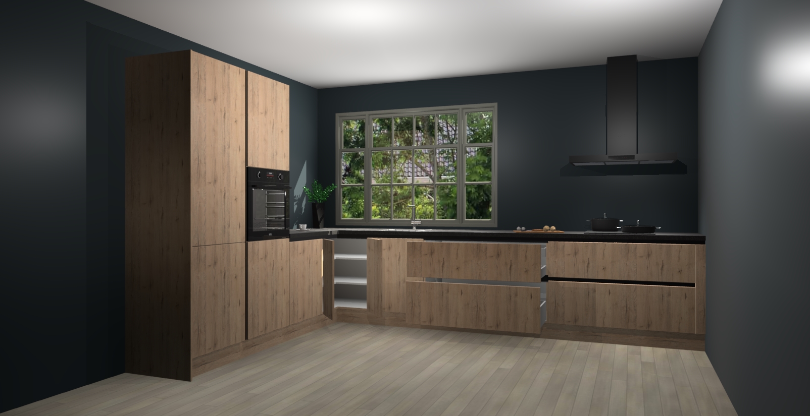Kom dichtbij de perfecte keuken van uw dromen met de Madera Natuur greeploze keuken Malaga. Met een prachtige houtlook en eigentijds ontwerp, straalt deze keuken warmte en sfeer uit. Of u nu liefhebber bent van traditionele of moderne stijlen, er is genoeg ruimte om aan al uw behoeften te voldoen.