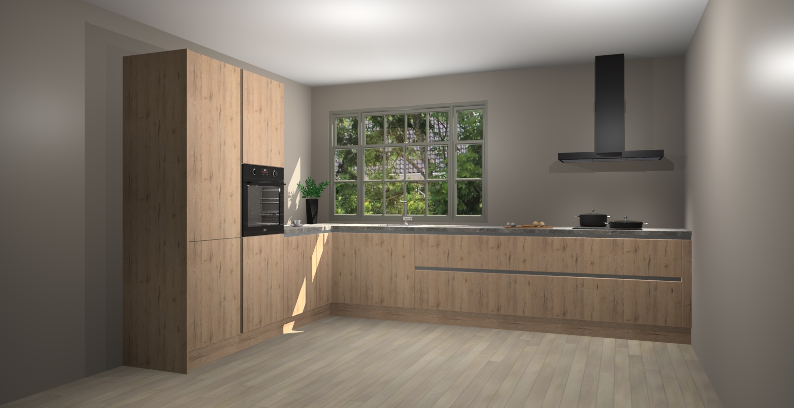 Kom dichtbij de perfecte keuken van uw dromen met de Madera Natuur greeploze keuken Malaga. Met een prachtige houtlook en eigentijds ontwerp, straalt deze keuken warmte en sfeer uit. Of u nu liefhebber bent van traditionele of moderne stijlen, er is genoeg ruimte om aan al uw behoeften te voldoen.