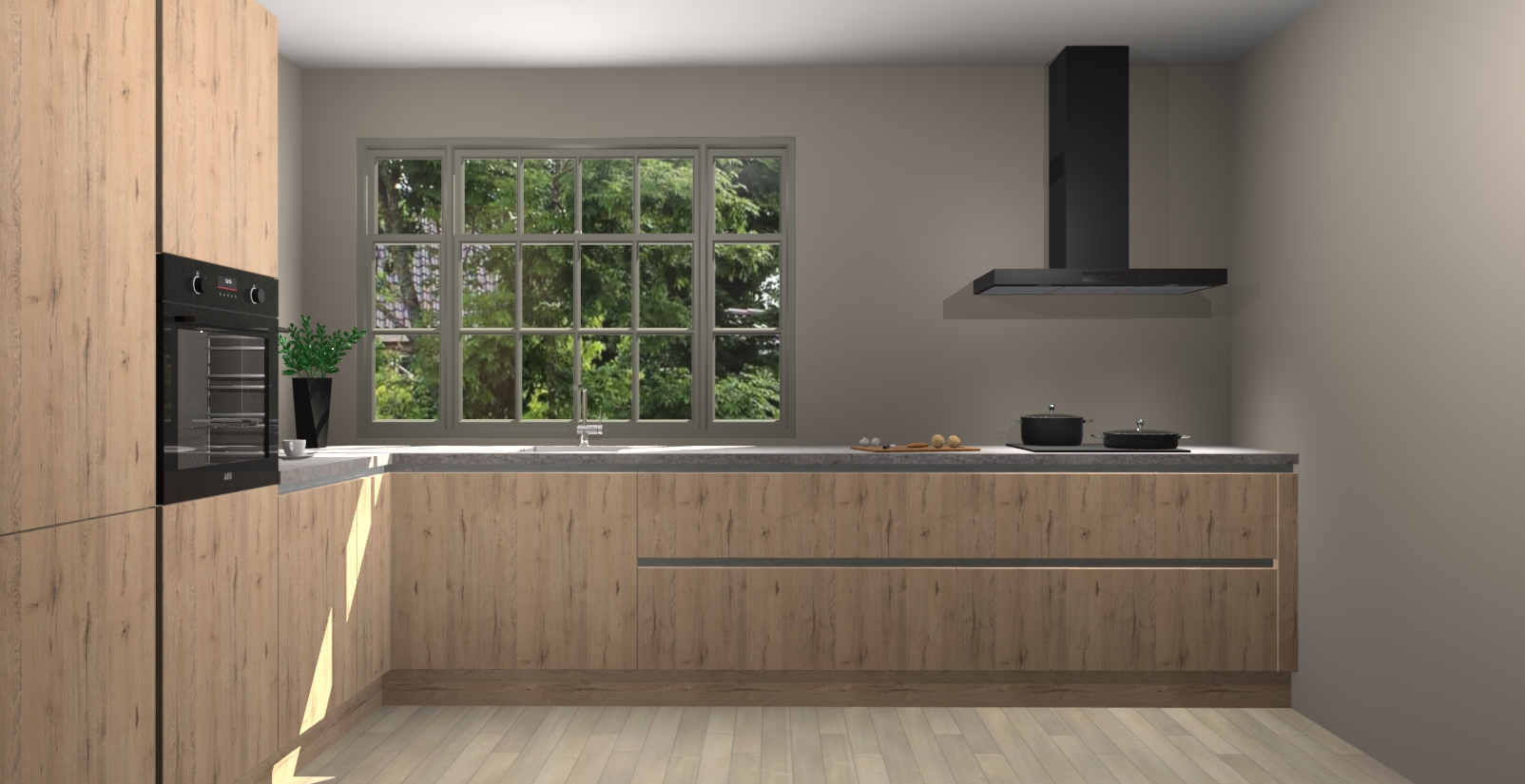 Kom dichtbij de perfecte keuken van uw dromen met de Madera Natuur greeploze keuken Malaga. Met een prachtige houtlook en eigentijds ontwerp, straalt deze keuken warmte en sfeer uit. Of u nu liefhebber bent van traditionele of moderne stijlen, er is genoeg ruimte om aan al uw behoeften te voldoen.