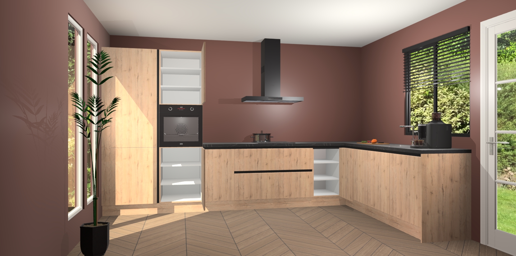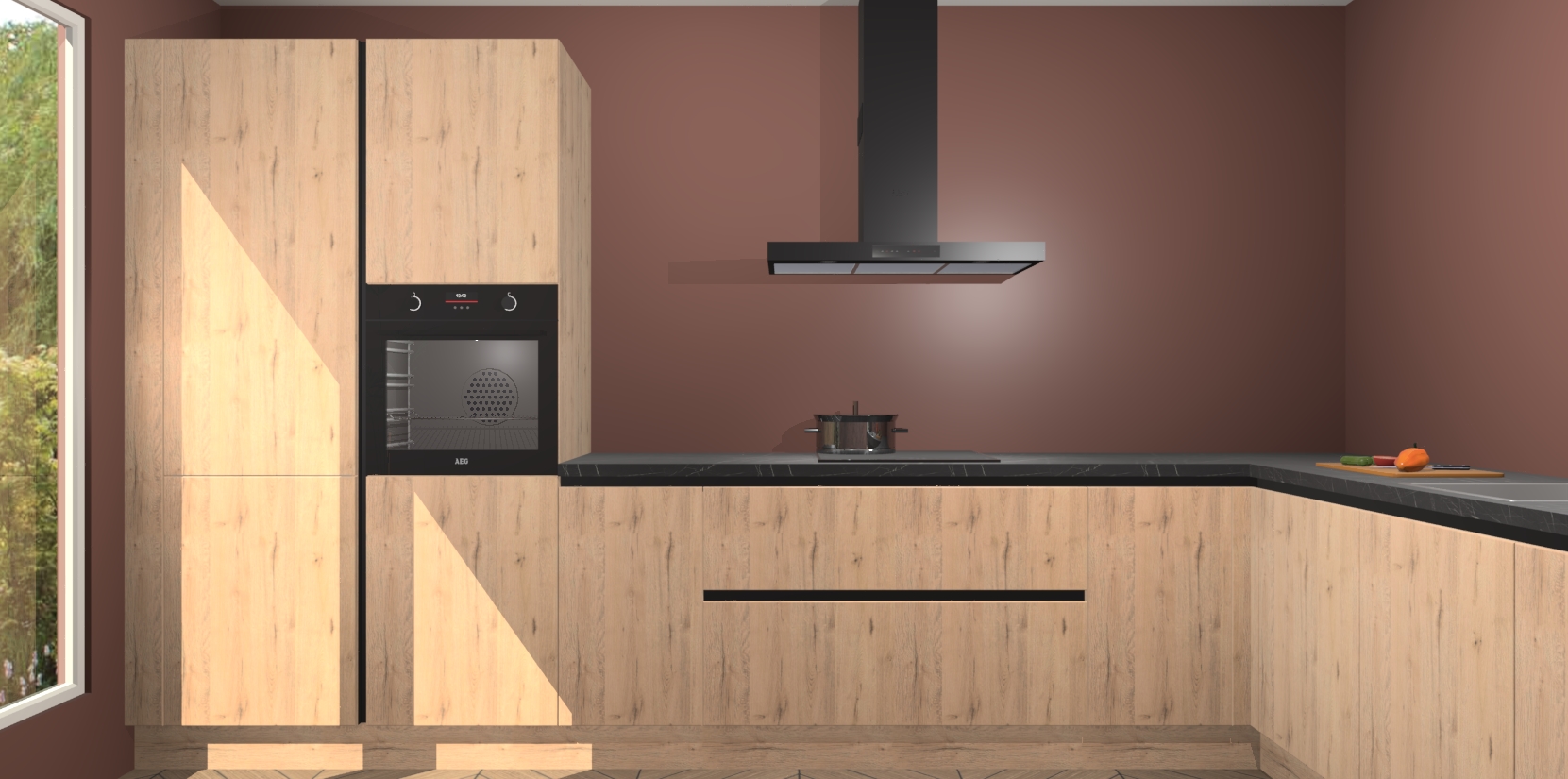 Met een modern, tijdloos design en ruime opslagruimte, zult u zich in no-time thuis voelen in uw nieuwe keuken. Uw leven wordt eenvoudiger met de soft-close deuren die voor het ultieme stille comfort zorgen - geen geluid dat u stoort terwijl u kookt. Ook is de keuken voorzien van 5 ingebouwde apparaten: een oven, inductie kookplaat, afzuigkap, vaatwasser en koelkast. Deze kunnen gemakkelijk na bestelling worden bijgewerkt naar AEG - waardoor uw luxe ervaring compleet is.
