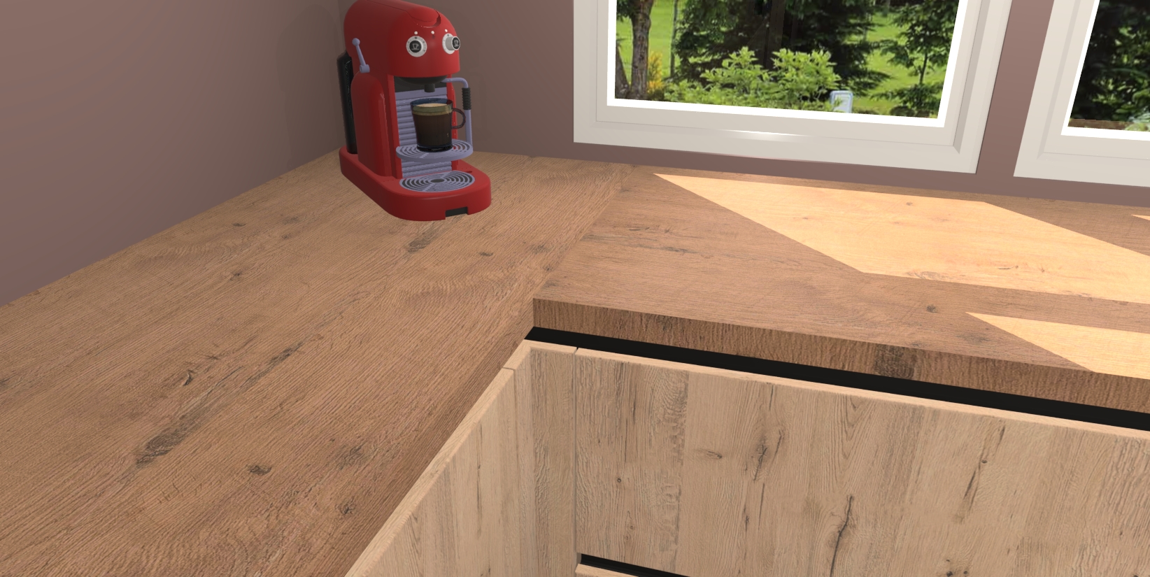 - Bij een hoekwerkblad zijn de hoeken in gevreesd en op maat gemaakt
