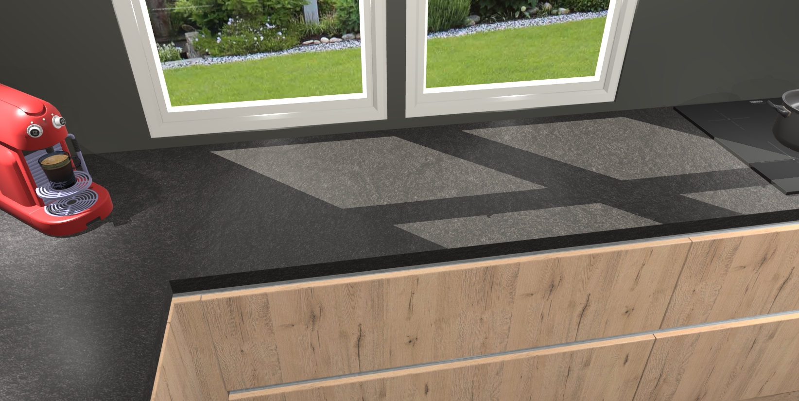- Bij een hoekwerkblad zijn de hoeken in gevreesd en op maat gemaakt