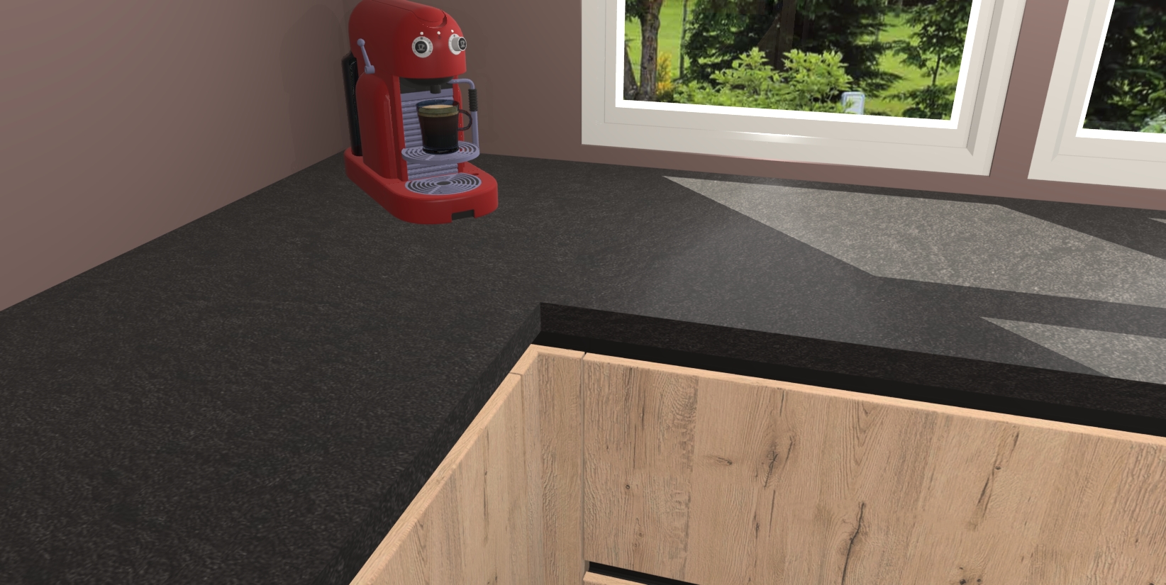 - Bij een hoekwerkblad zijn de hoeken in gevreesd en op maat gemaakt