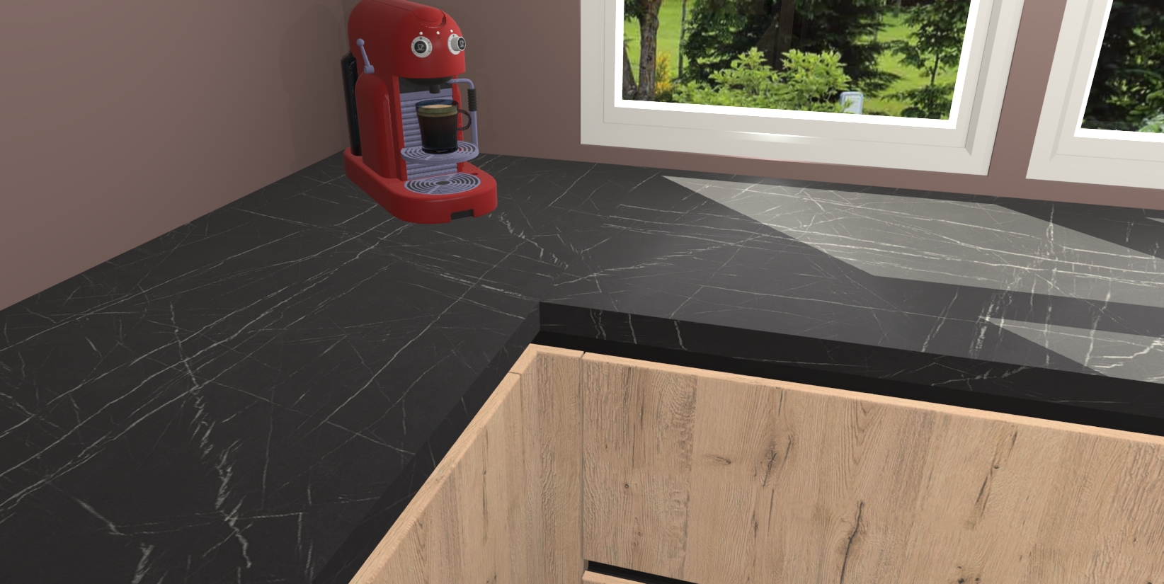 - Bij een hoekwerkblad zijn de hoeken in gevreesd en op maat gemaakt
