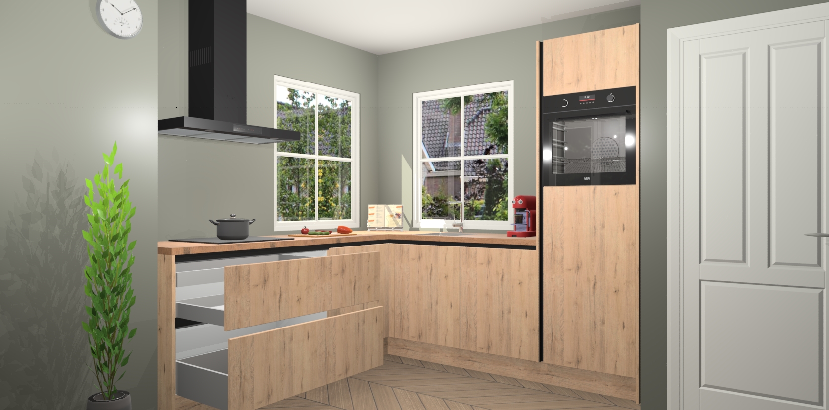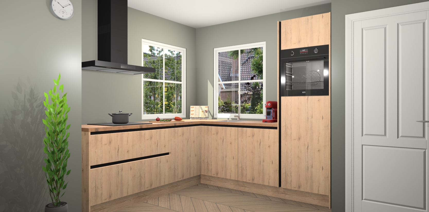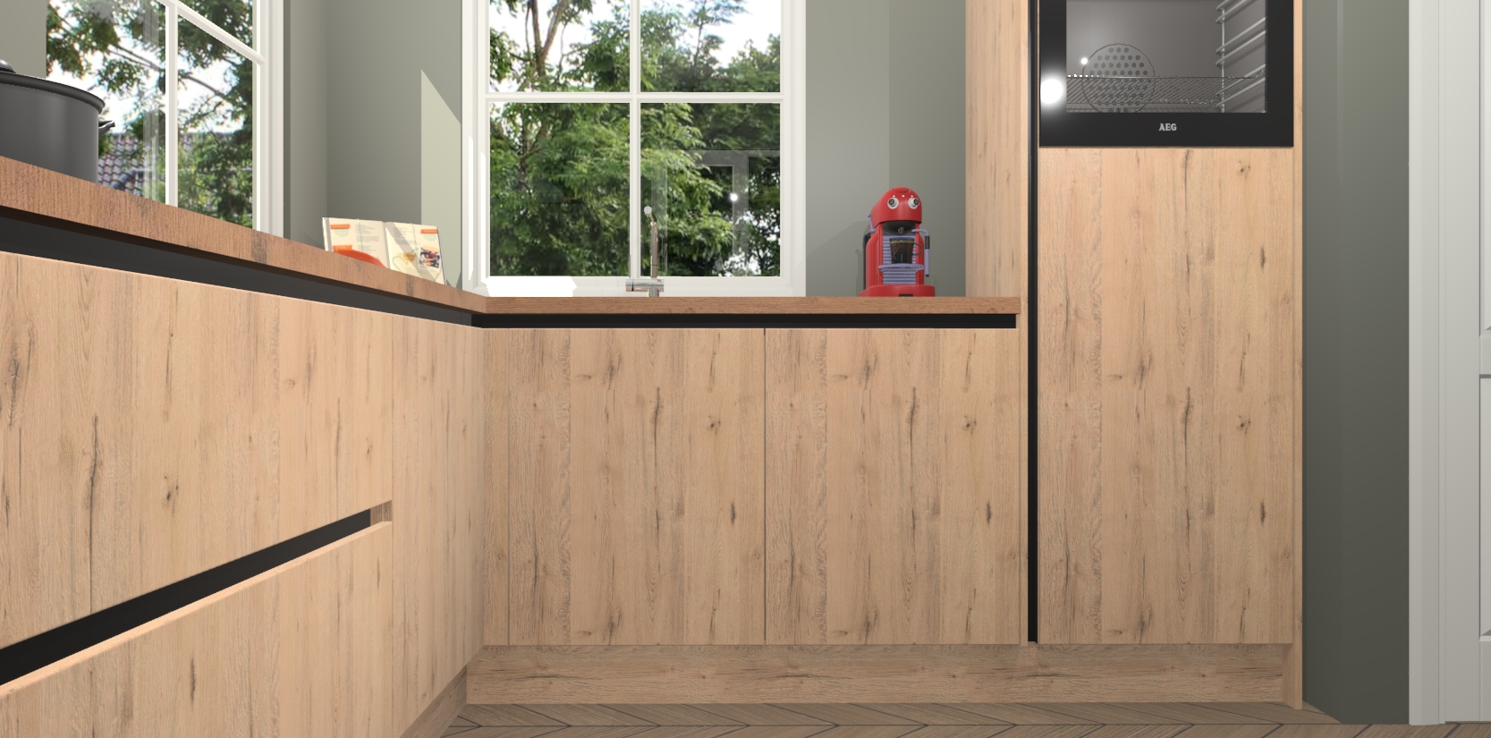 De Madera Natuur greeploze keuken Pai bevat vijf essentiële inbouwapparaten - een oven, inductiekookplaat, afzuigkap, vaatwasser en koelkast - zodat u er na levering meteen in kunt. Voor de slimme kopers die weten dat apparaten vaak het verschil kunnen maken tussen functioneel en luxueus, bieden we eenvoudige upgradeopties naar AEG, van oven naar combimagnetron na bestelling of naar een kookplaat met geïntrigeerde afzuiging. En met onze vaste lage prijs en snelle levering binnen zeven weken vanaf de orderbevestiging hoeft u zich geen zorgen te maken over verborgen kosten of lange levertijden die uw droomkeuken kunnen vertragen.