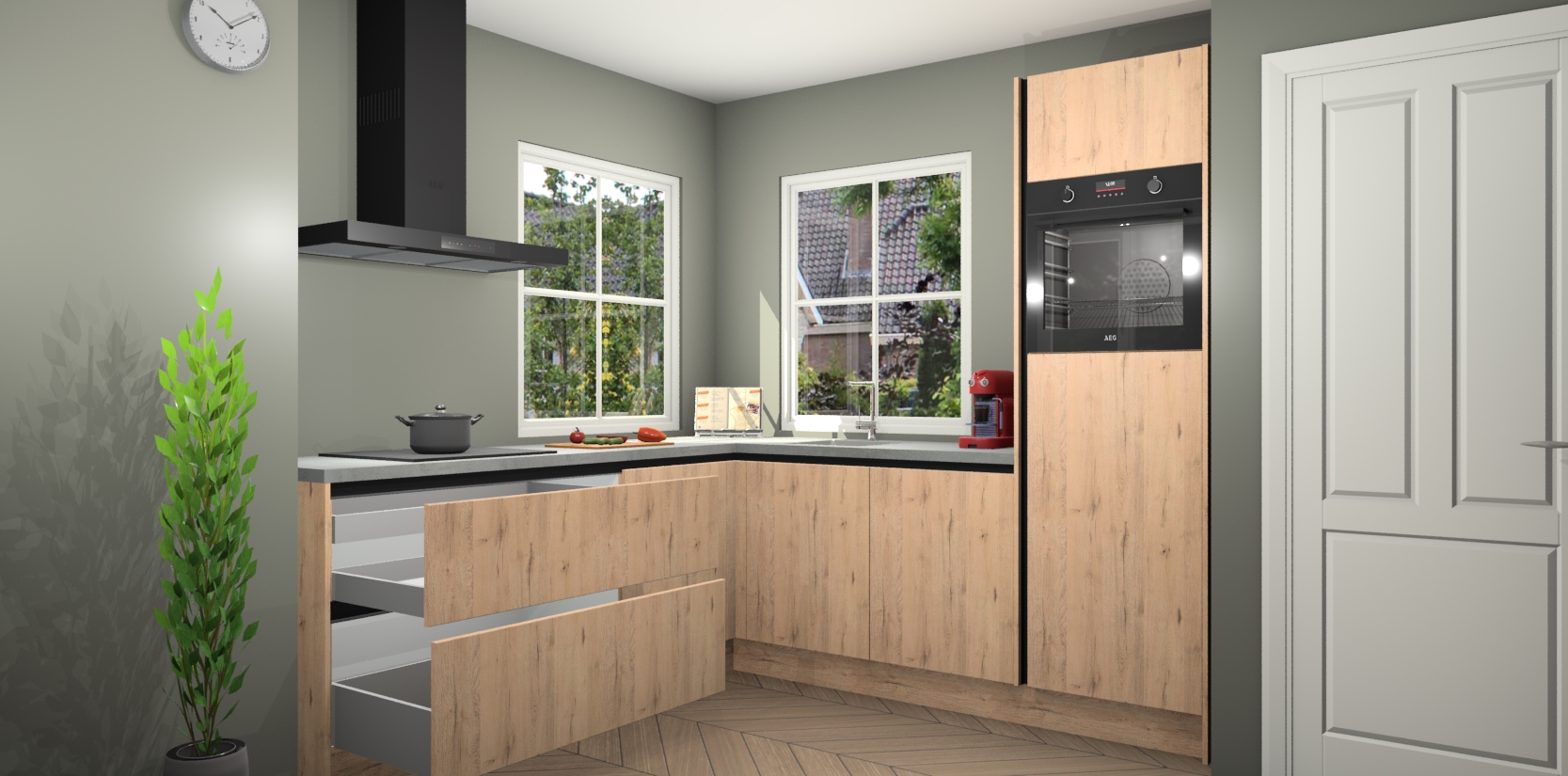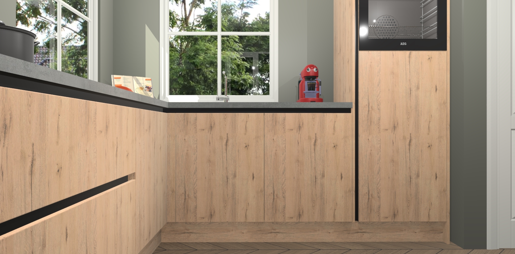De Madera Natuur greeploze keuken Pai bevat vijf essentiële inbouwapparaten - een oven, inductiekookplaat, afzuigkap, vaatwasser en koelkast - zodat u er na levering meteen in kunt. Voor de slimme kopers die weten dat apparaten vaak het verschil kunnen maken tussen functioneel en luxueus, bieden we eenvoudige upgradeopties naar AEG, van oven naar combimagnetron na bestelling of naar een kookplaat met geïntrigeerde afzuiging. En met onze vaste lage prijs en snelle levering binnen zeven weken vanaf de orderbevestiging hoeft u zich geen zorgen te maken over verborgen kosten of lange levertijden die uw droomkeuken kunnen vertragen.