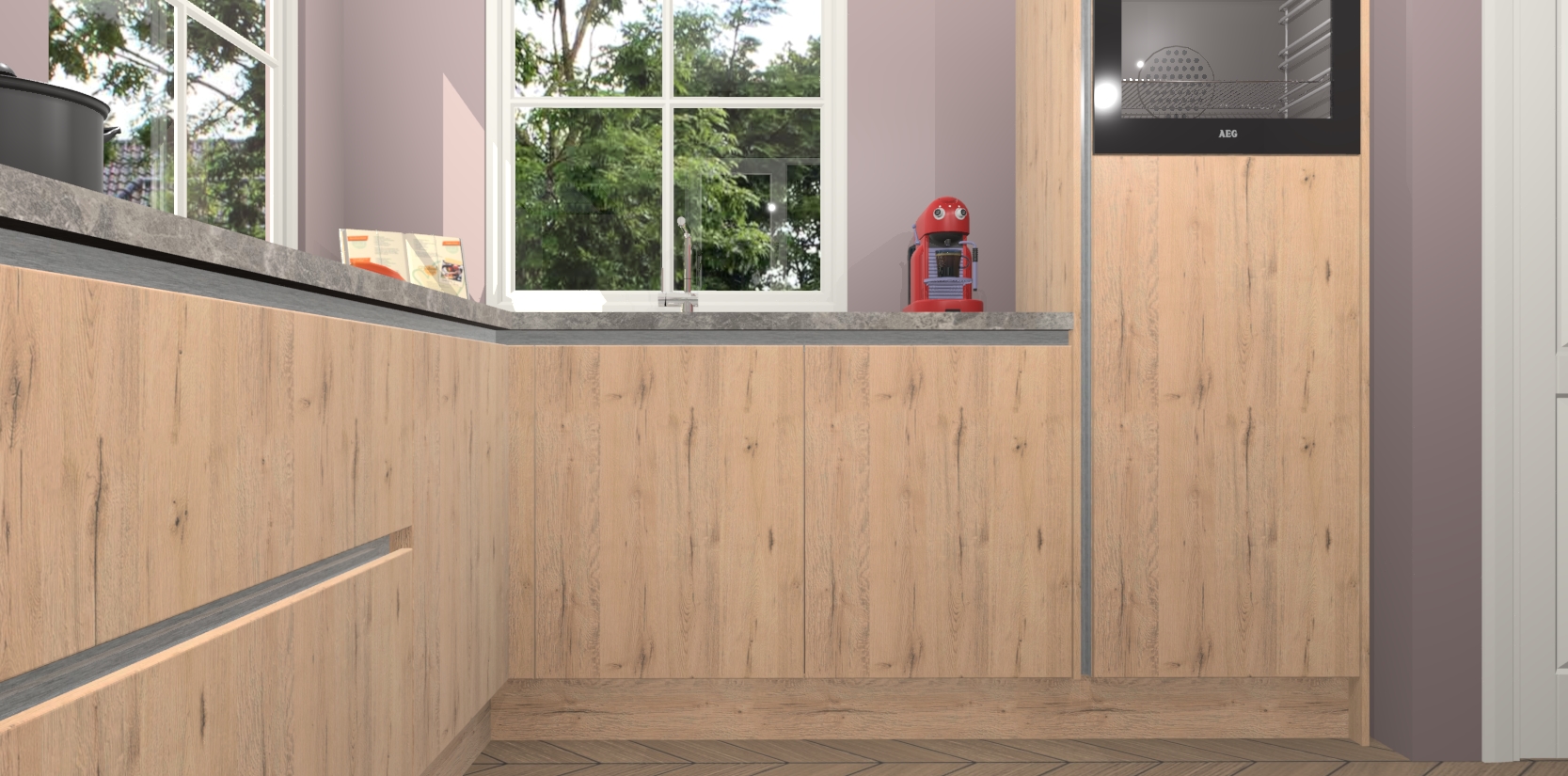 De Madera Natuur greeploze keuken Pai bevat vijf essentiële inbouwapparaten - een oven, inductiekookplaat, afzuigkap, vaatwasser en koelkast - zodat u er na levering meteen in kunt. Voor de slimme kopers die weten dat apparaten vaak het verschil kunnen maken tussen functioneel en luxueus, bieden we eenvoudige upgradeopties naar AEG, van oven naar combimagnetron na bestelling of naar een kookplaat met geïntrigeerde afzuiging. En met onze vaste lage prijs en snelle levering binnen zeven weken vanaf de orderbevestiging hoeft u zich geen zorgen te maken over verborgen kosten of lange levertijden die uw droomkeuken kunnen vertragen.
