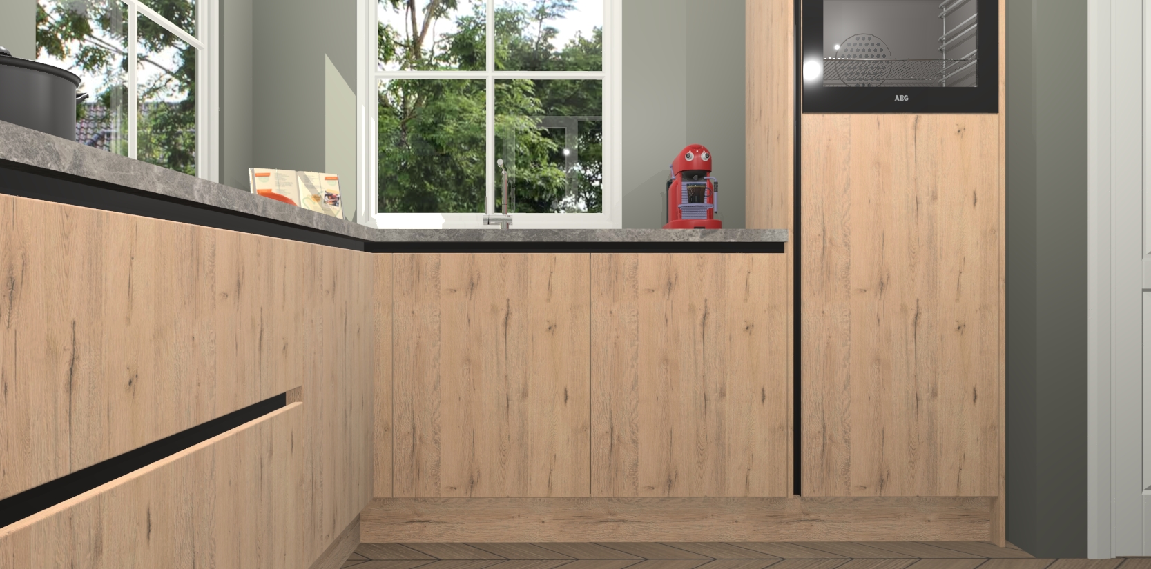 De Madera Natuur greeploze keuken Pai bevat vijf essentiële inbouwapparaten - een oven, inductiekookplaat, afzuigkap, vaatwasser en koelkast - zodat u er na levering meteen in kunt. Voor de slimme kopers die weten dat apparaten vaak het verschil kunnen maken tussen functioneel en luxueus, bieden we eenvoudige upgradeopties naar AEG, van oven naar combimagnetron na bestelling of naar een kookplaat met geïntrigeerde afzuiging. En met onze vaste lage prijs en snelle levering binnen zeven weken vanaf de orderbevestiging hoeft u zich geen zorgen te maken over verborgen kosten of lange levertijden die uw droomkeuken kunnen vertragen.