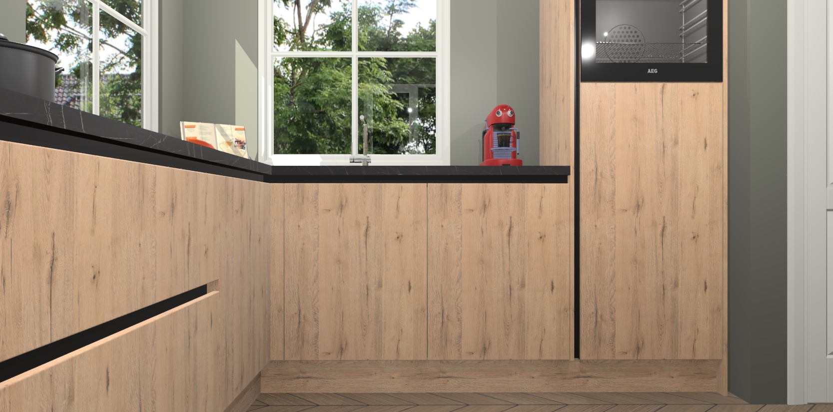 De Madera Natuur greeploze keuken Pai bevat vijf essentiële inbouwapparaten - een oven, inductiekookplaat, afzuigkap, vaatwasser en koelkast - zodat u er na levering meteen in kunt. Voor de slimme kopers die weten dat apparaten vaak het verschil kunnen maken tussen functioneel en luxueus, bieden we eenvoudige upgradeopties naar AEG, van oven naar combimagnetron na bestelling of naar een kookplaat met geïntrigeerde afzuiging. En met onze vaste lage prijs en snelle levering binnen zeven weken vanaf de orderbevestiging hoeft u zich geen zorgen te maken over verborgen kosten of lange levertijden die uw droomkeuken kunnen vertragen.