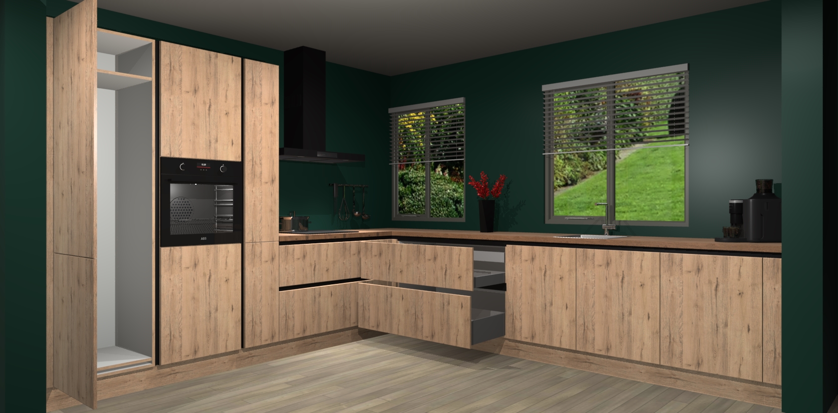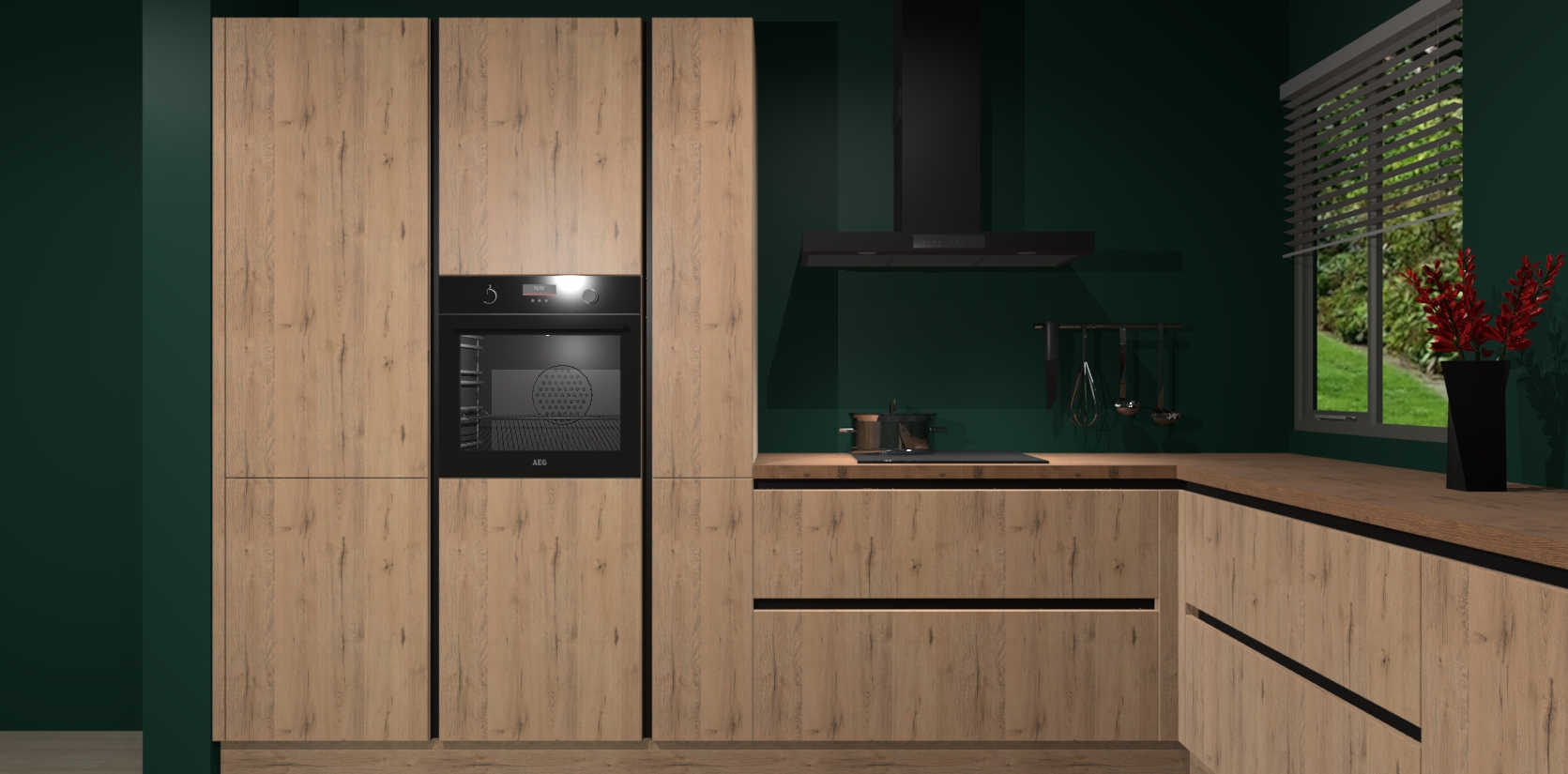 Welkom bij de Madera Natuur keuken Palermo. Deze prachtige keuken zal de komende jaren het middelpunt van de belangstelling in uw huis zijn. Uitgerust met vijf inbouwapparaten komt u nooit kookgereedschap tekort. Bovendien geeft de warme houtlook elke ruimte een uitnodigende en tijdloze uitstraling.