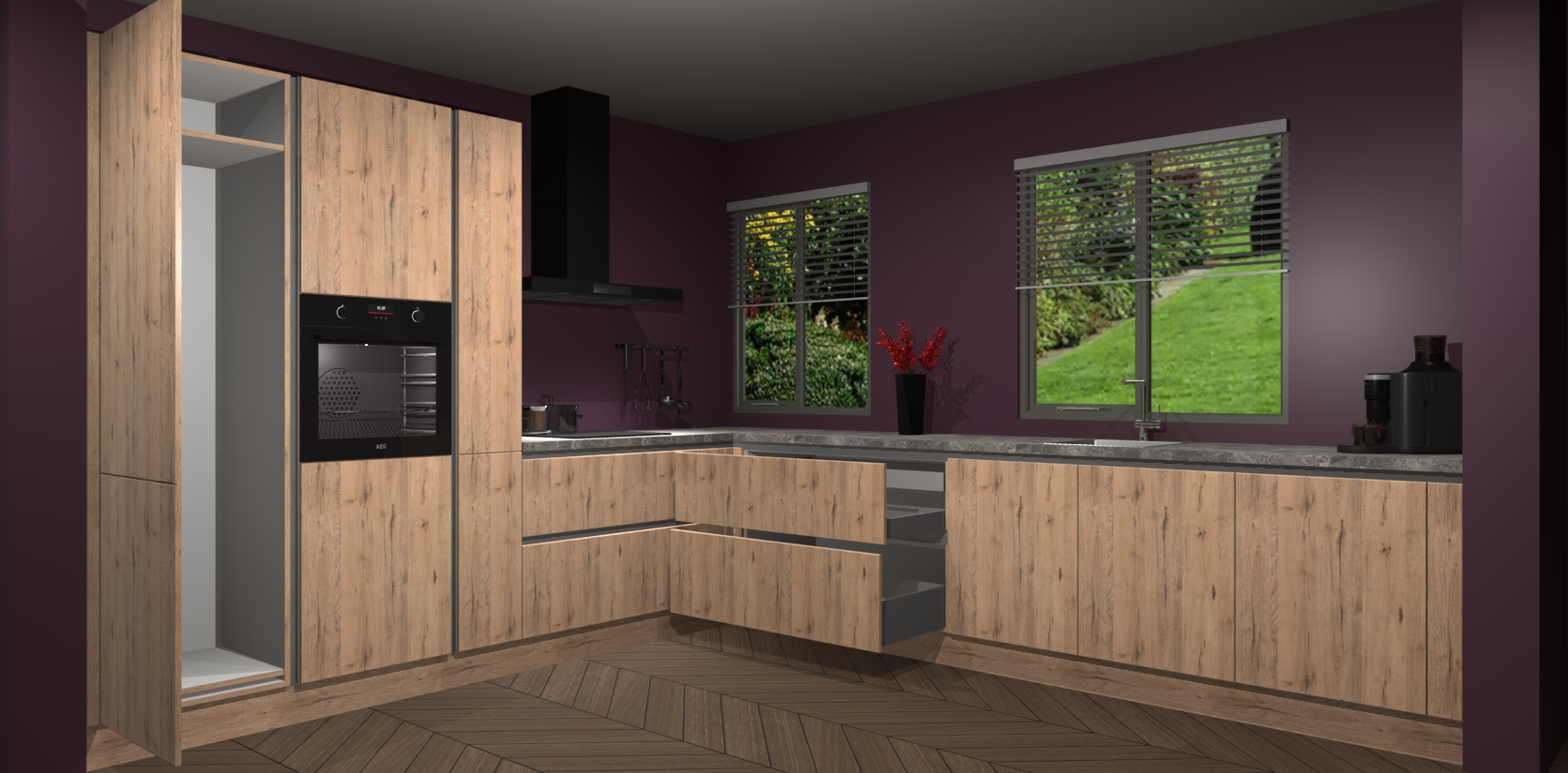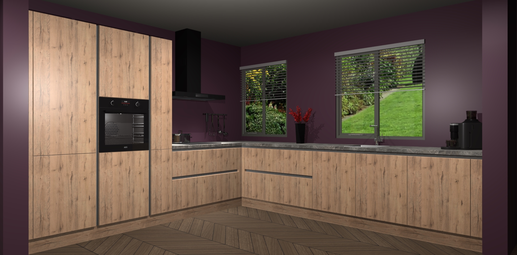 Welkom bij de Madera Natuur keuken Palermo. Deze prachtige keuken zal de komende jaren het middelpunt van de belangstelling in uw huis zijn. Uitgerust met vijf inbouwapparaten komt u nooit kookgereedschap tekort. Bovendien geeft de warme houtlook elke ruimte een uitnodigende en tijdloze uitstraling.