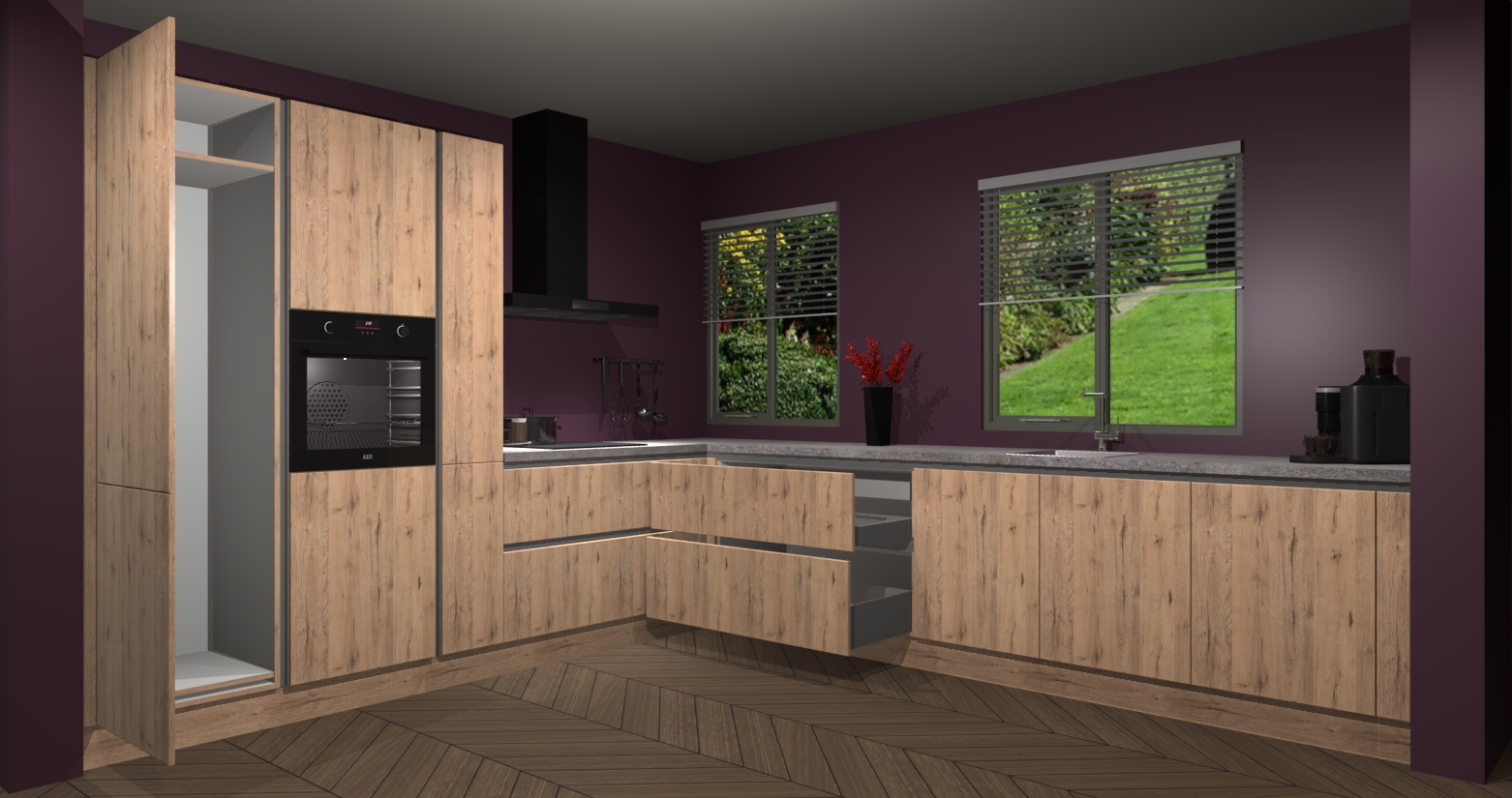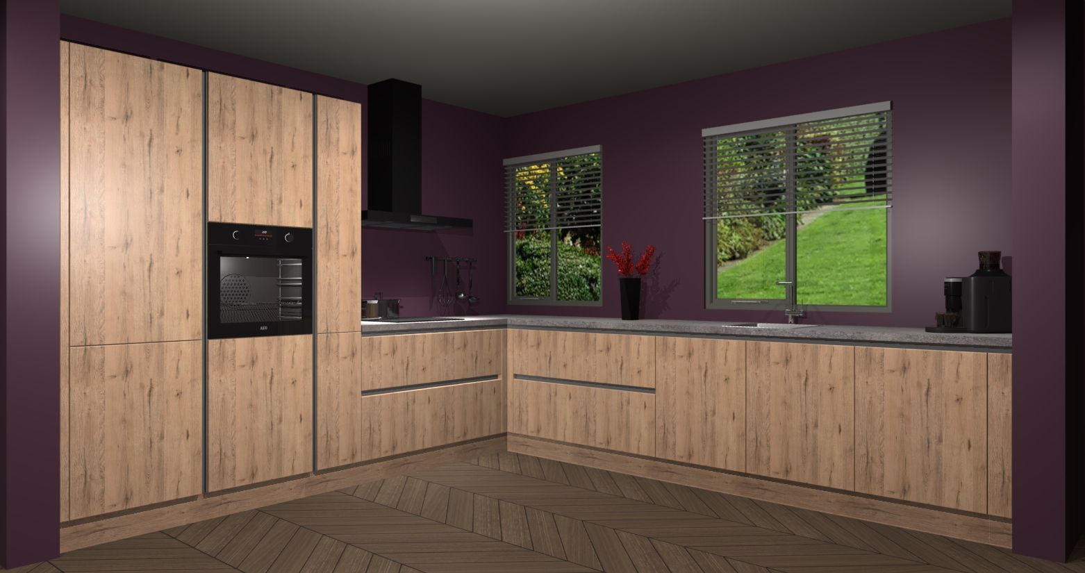 Welkom bij de Madera Natuur keuken Palermo. Deze prachtige keuken zal de komende jaren het middelpunt van de belangstelling in uw huis zijn. Uitgerust met vijf inbouwapparaten komt u nooit kookgereedschap tekort. Bovendien geeft de warme houtlook elke ruimte een uitnodigende en tijdloze uitstraling.