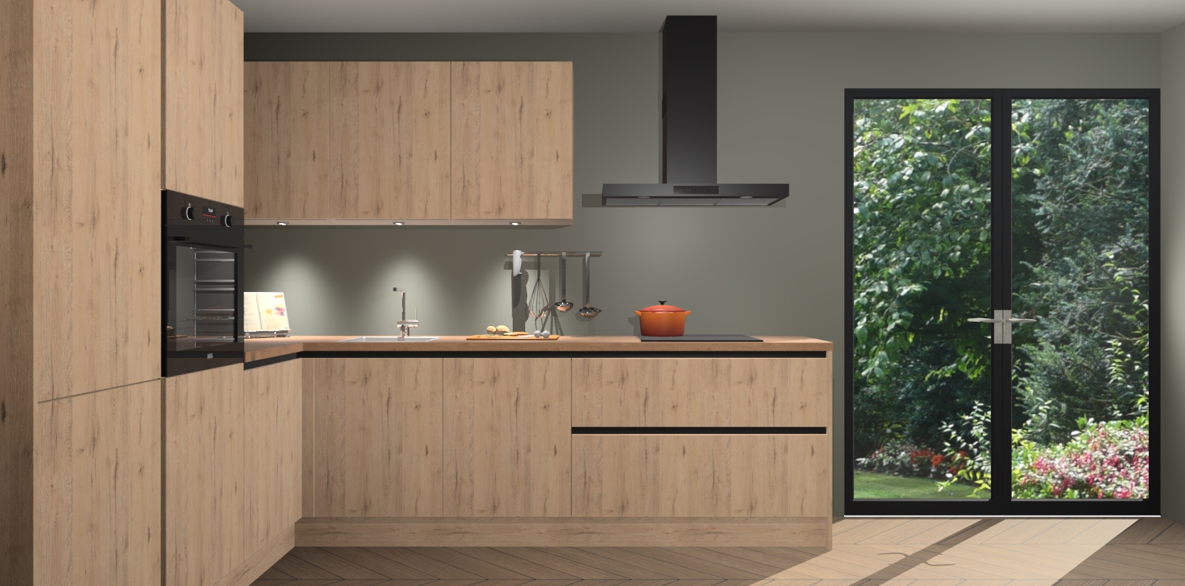 Maak kennis met de madera natuur greeploze keuken Parla - de perfecte aanvulling voor uw moderne keuken! Ervaar tijdloos design, elegantie en een chique uitstraling met onze zwarte handgrepen, soft-close deuren en veel opbergruimte. Dit alles wordt aangeboden tegen een vaste lage prijs voor ongeëvenaarde Duitse keukenkwaliteit!