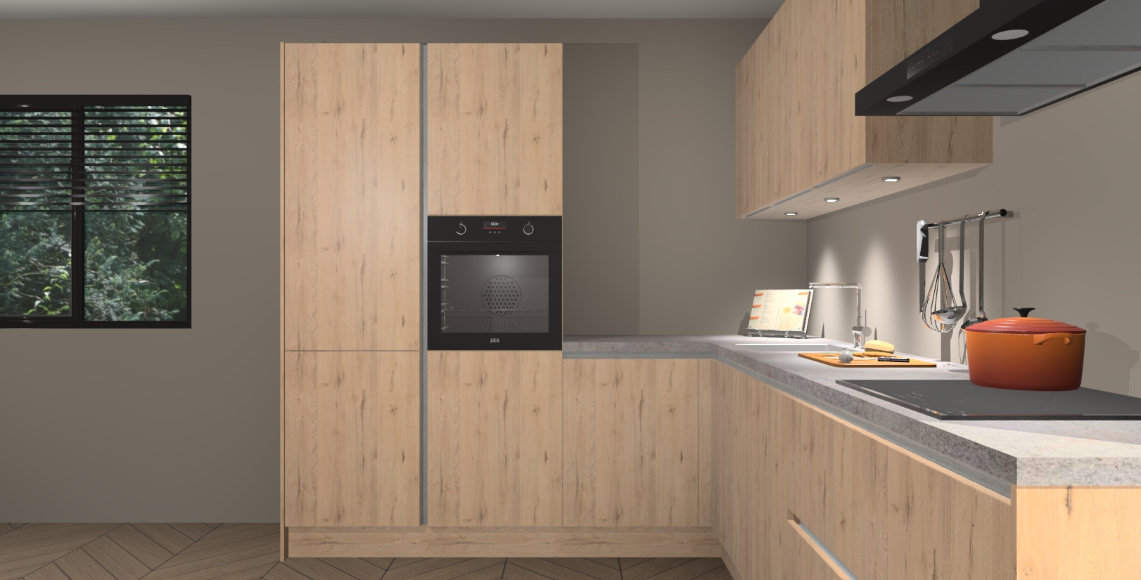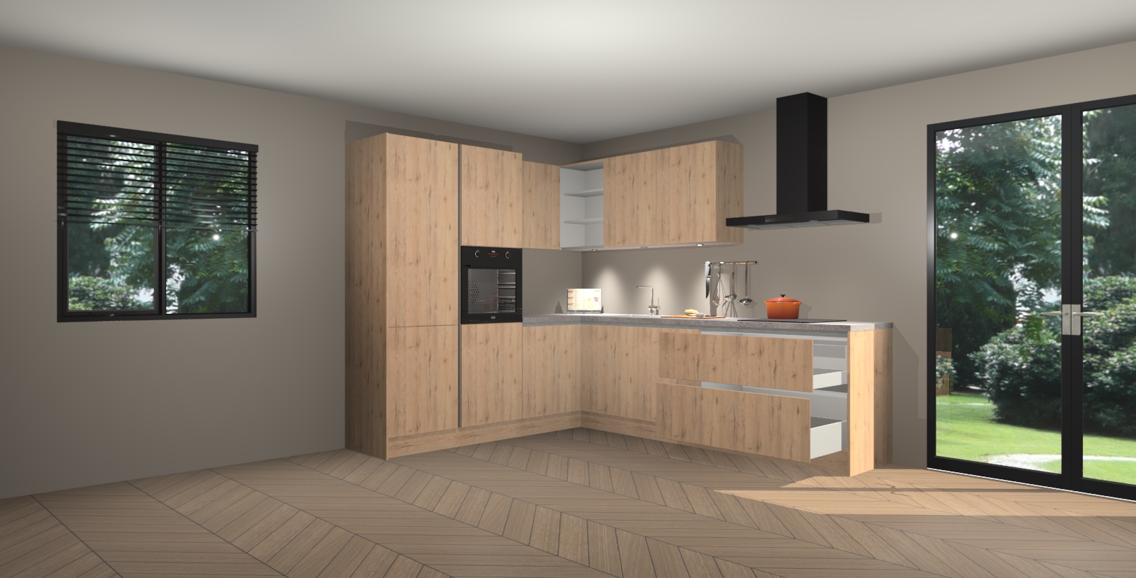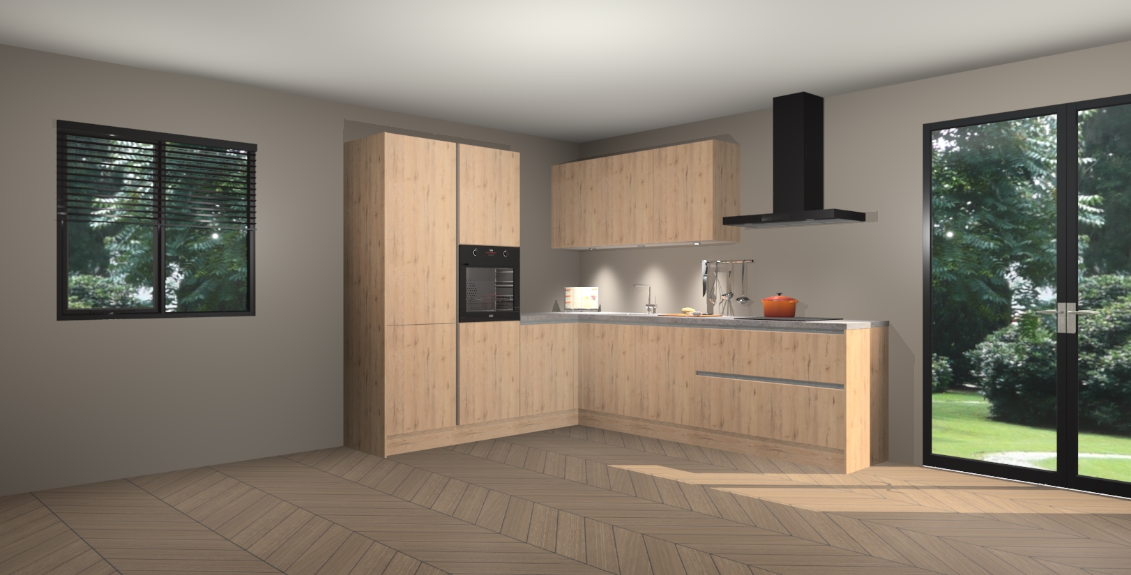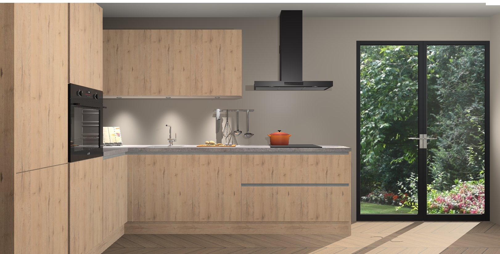 Met de madera natuur greeploze keuken Parla Maakt u van uw keuken het pronkstuk van uw huis. Stijlvol en toch praktisch, de nieuwste look voor wie meer waarde en charme aan zijn huis wil toevoegen. Met prachtige zwarte handgrepen die zich lenen voor een klassieke stijlbron, zal u niet teleurgesteld zijn in het resultaat. De soft-close deurscharnieren geven een gevoel van luxe omdat ze zachtjes bewegen zonder storende of krakende geluiden te veroorzaken.
