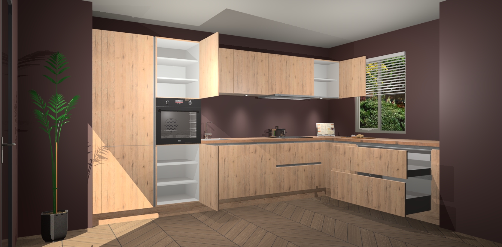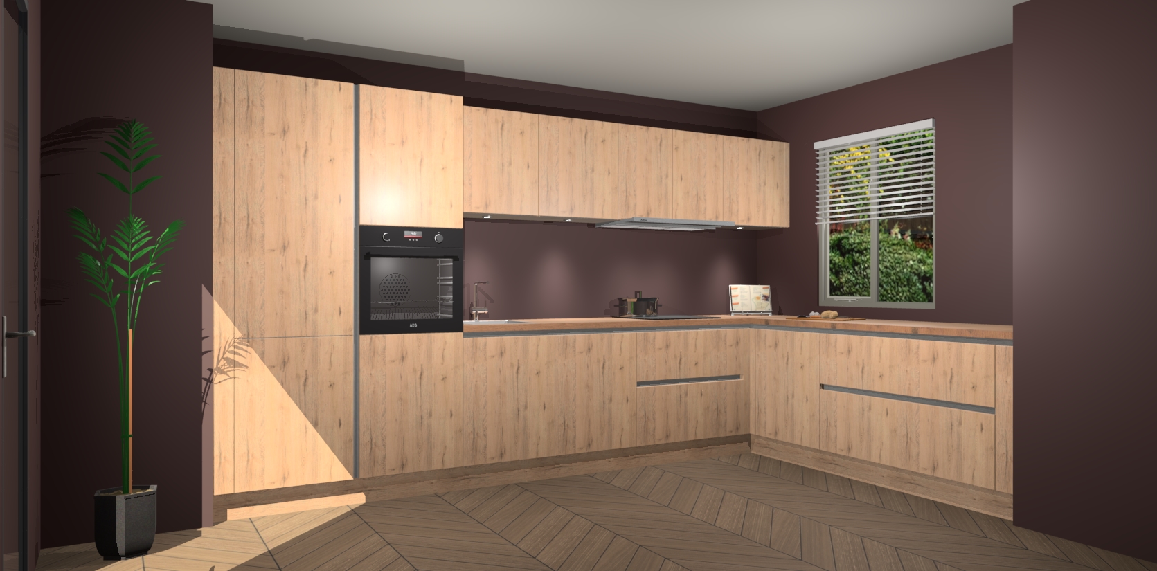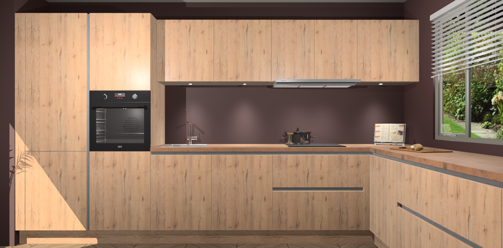 Verwelkom de natuurlijke warmte van de Madera Natuur greeploze keuken Petten in uw huis. Deze prachtige hoekkeuken met zijn moderne design en warme houten look geeft u meer dan genoeg opbergruimte om uw comfortabel te voelen in uw keuken. Geniet van soft-close deuren die al uw gasten het gevoel zullen geven dat ze zich in een luxueuze ruimte bevinden.