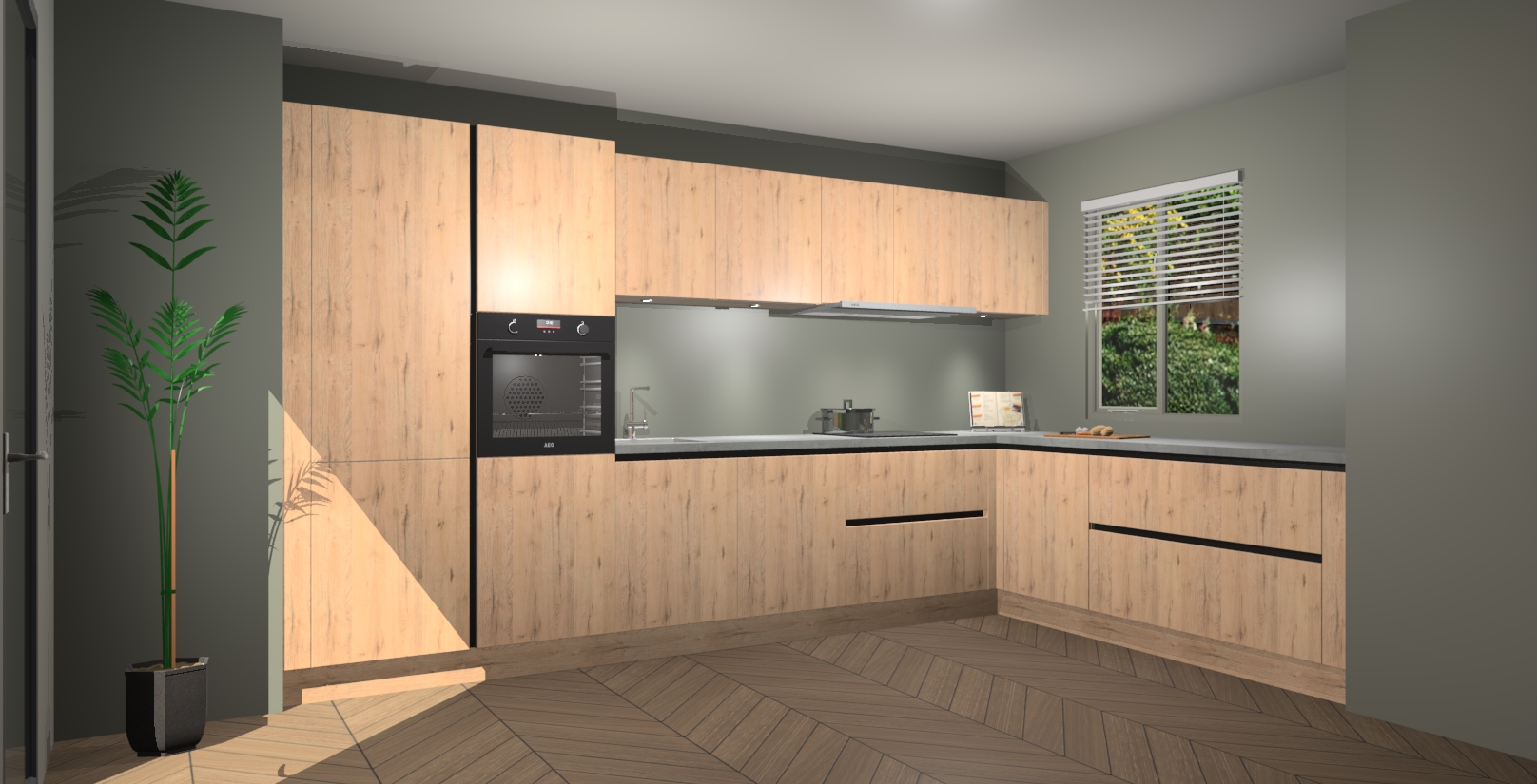Verwelkom de natuurlijke warmte van de Madera Natuur greeploze keuken Petten in uw huis. Deze prachtige hoekkeuken met zijn moderne design en warme houten look geeft u meer dan genoeg opbergruimte om uw comfortabel te voelen in uw keuken. Geniet van soft-close deuren die al uw gasten het gevoel zullen geven dat ze zich in een luxueuze ruimte bevinden.