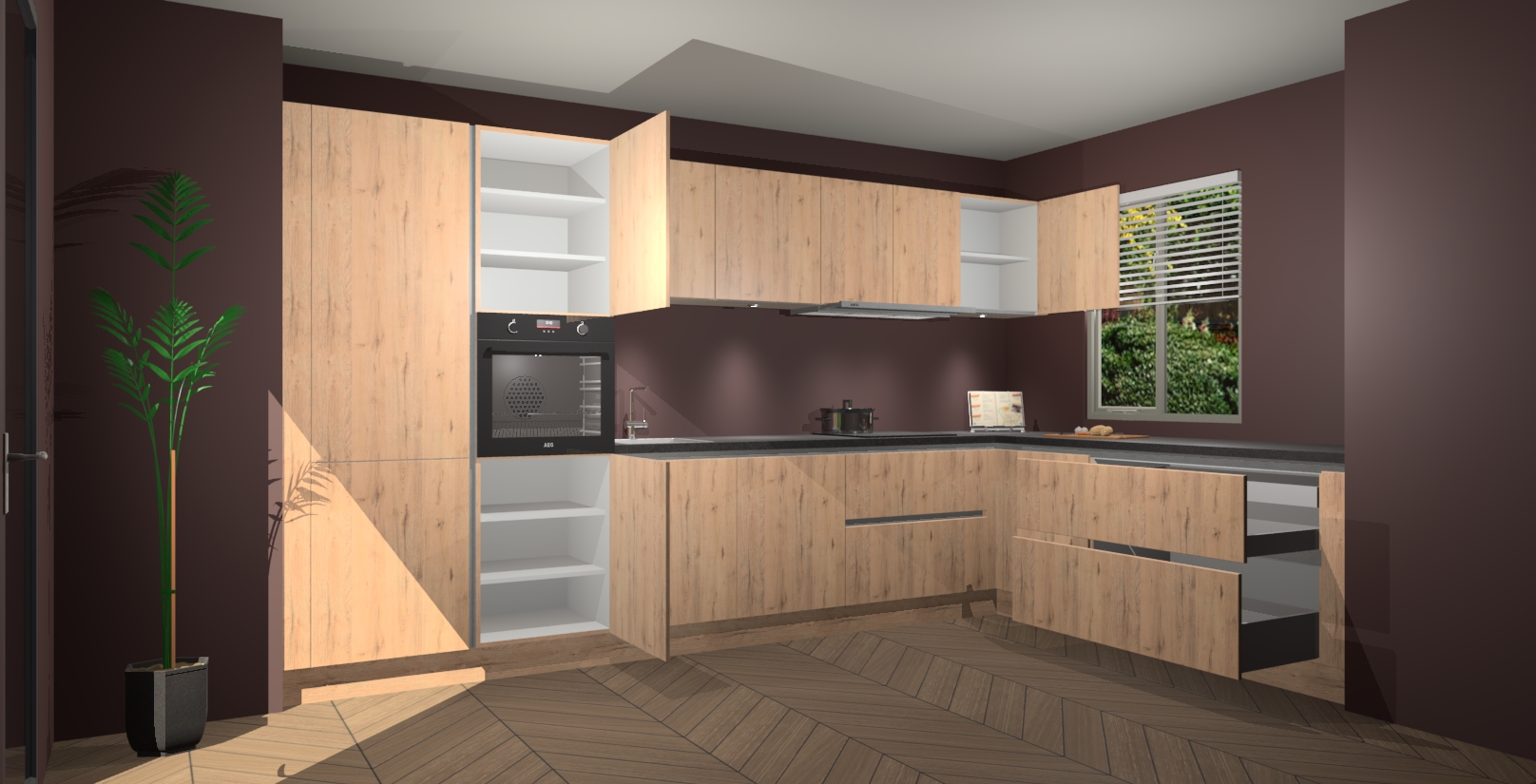 Verwelkom de natuurlijke warmte van de Madera Natuur greeploze keuken Petten in uw huis. Deze prachtige hoekkeuken met zijn moderne design en warme houten look geeft u meer dan genoeg opbergruimte om uw comfortabel te voelen in uw keuken. Geniet van soft-close deuren die al uw gasten het gevoel zullen geven dat ze zich in een luxueuze ruimte bevinden.
