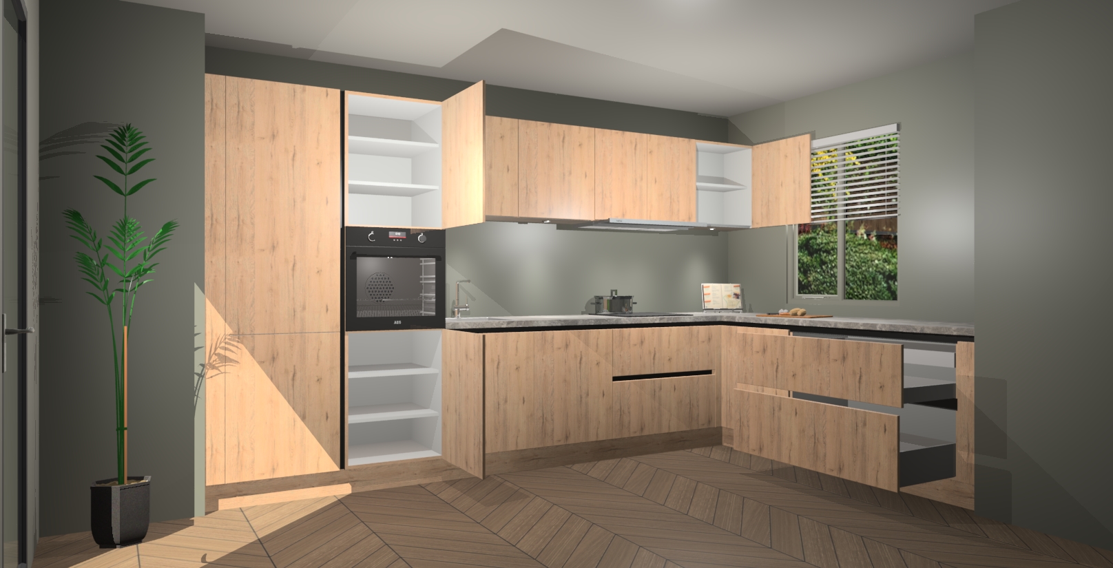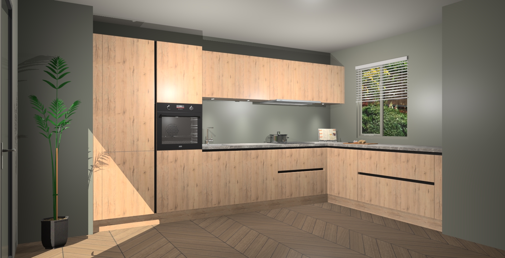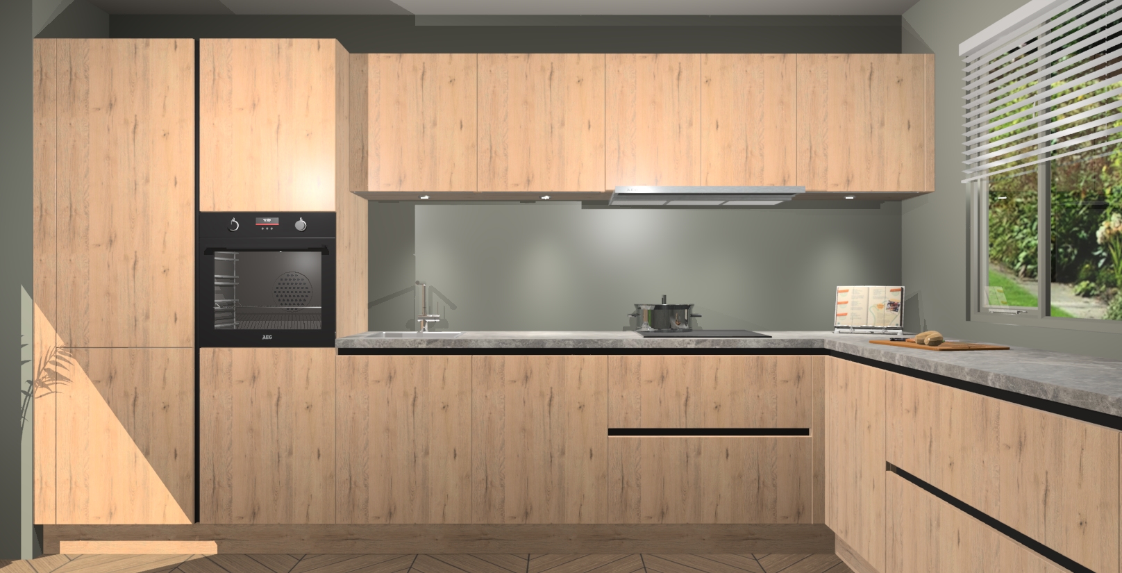 Verwelkom de natuurlijke warmte van de Madera Natuur greeploze keuken Petten in uw huis. Deze prachtige hoekkeuken met zijn moderne design en warme houten look geeft u meer dan genoeg opbergruimte om uw comfortabel te voelen in uw keuken. Geniet van soft-close deuren die al uw gasten het gevoel zullen geven dat ze zich in een luxueuze ruimte bevinden.