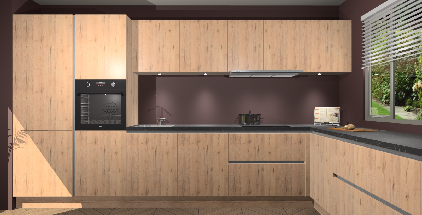 Verwelkom de natuurlijke warmte van de Madera Natuur greeploze keuken Petten in uw huis. Deze prachtige hoekkeuken met zijn moderne design en warme houten look geeft u meer dan genoeg opbergruimte om uw comfortabel te voelen in uw keuken. Geniet van soft-close deuren die al uw gasten het gevoel zullen geven dat ze zich in een luxueuze ruimte bevinden.