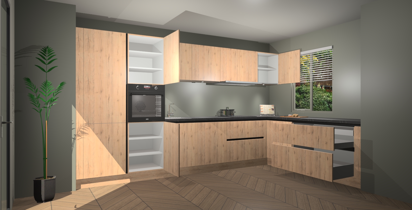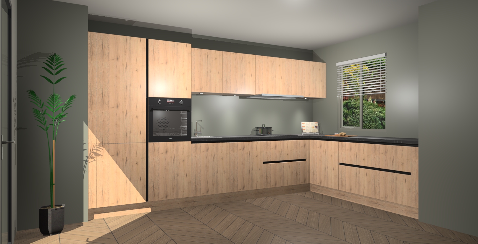 Verwelkom de natuurlijke warmte van de Madera Natuur greeploze keuken Petten in uw huis. Deze prachtige hoekkeuken met zijn moderne design en warme houten look geeft u meer dan genoeg opbergruimte om uw comfortabel te voelen in uw keuken. Geniet van soft-close deuren die al uw gasten het gevoel zullen geven dat ze zich in een luxueuze ruimte bevinden.