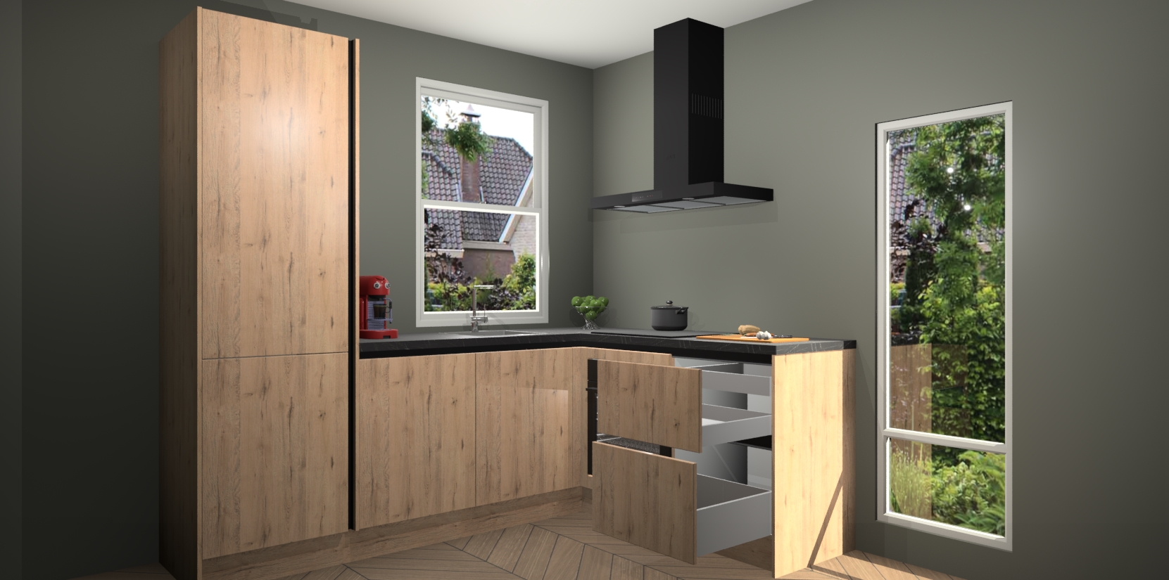 De prachtige Madera Natuur greeploze keuken Phuket is de perfecte keuze als u op zoek bent naar een moderne hoekkeuken met alle luxe en comfort die u kunt verwachten! De uitstraling in het houtlook-design draagt bij aan de warme sfeer die u nu al voelt wanneer u er naar kijkt. Heeft u genoeg van ouderwetse keukens? Probeer dan direct deze moderne, mooie hoekkeukens en laat iedereen verbluft achter!