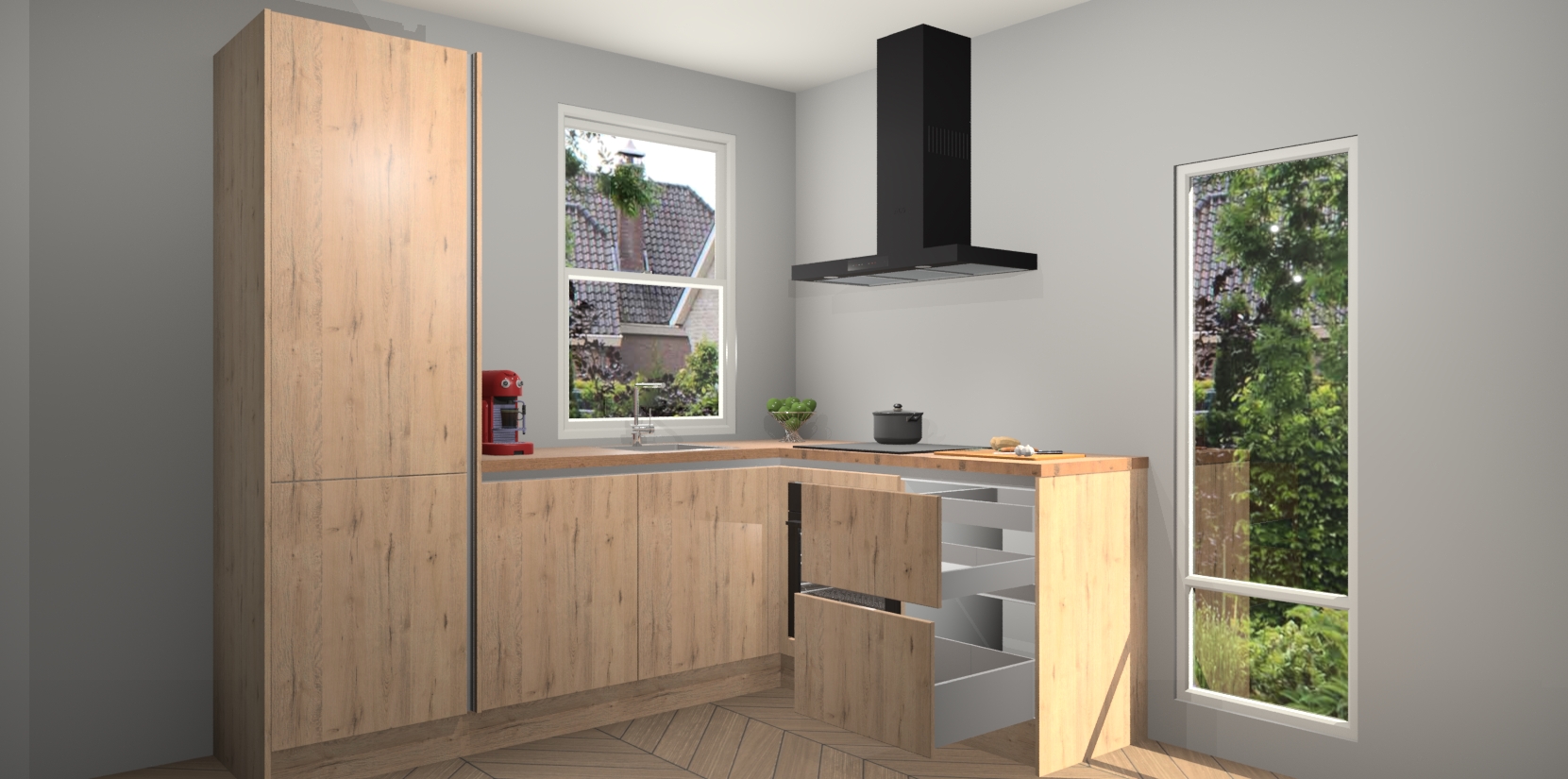 De prachtige Madera Natuur greeploze keuken Phuket is de perfecte keuze als u op zoek bent naar een moderne hoekkeuken met alle luxe en comfort die u kunt verwachten! De uitstraling in het houtlook-design draagt bij aan de warme sfeer die u nu al voelt wanneer u er naar kijkt. Heeft u genoeg van ouderwetse keukens? Probeer dan direct deze moderne, mooie hoekkeukens en laat iedereen verbluft achter!